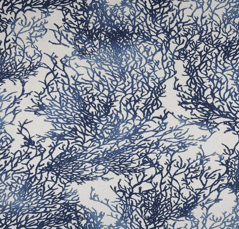 Baumwollstoff Dekostoff mit Korallenmotiv in Natur & Blau – polsterfähig