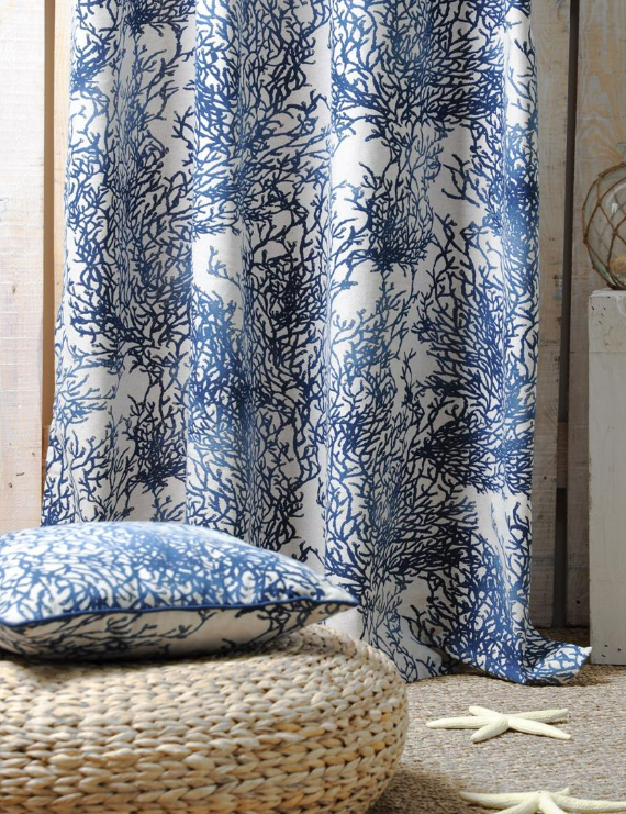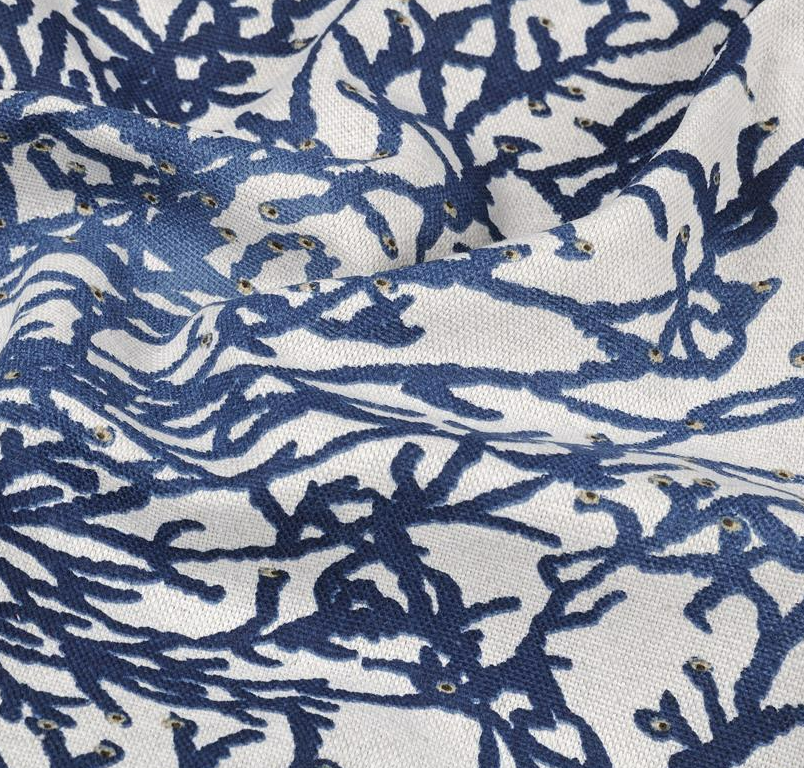 Robuster Baumwoll-Dekostoff mit Korallenmotiv in Natur und Blau