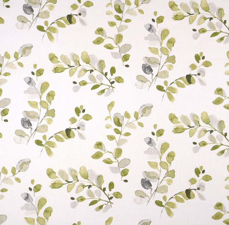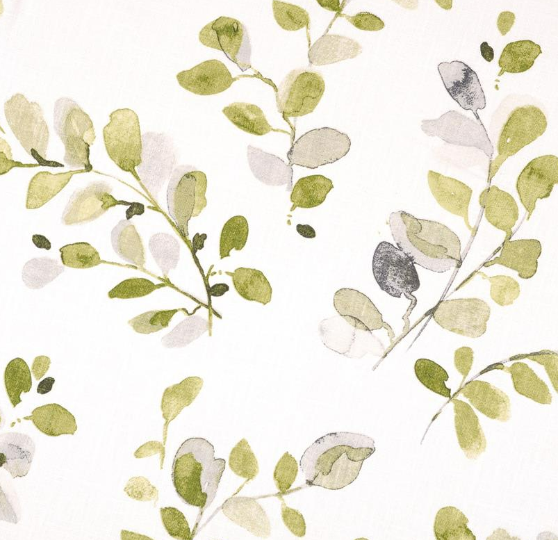Dekostoff Ramie Leinenoptik Acacia Blätter weiß Aquarell grün 1,50m Breite