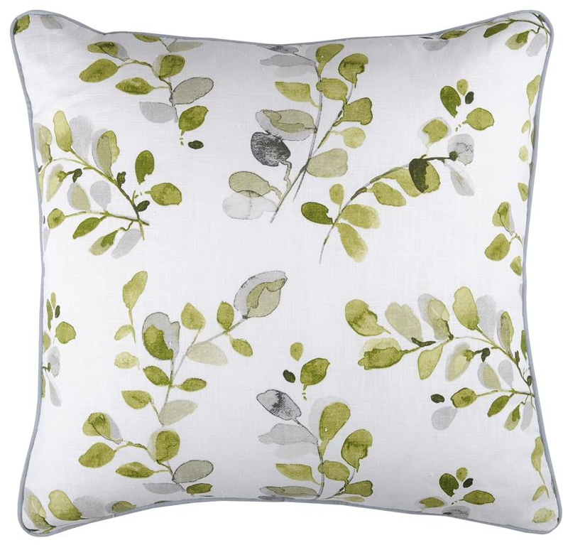 Dekostoff aus Ramie mit natürlicher Leinenoptik und Aquarell-Blätterdesign