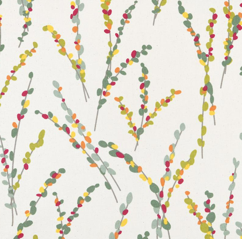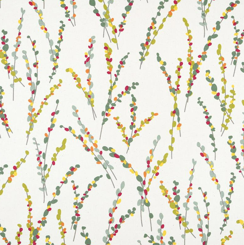 Dekostoff Vorhangstoff Brindille Zweige natur grün rot gelb 1,4m Breite