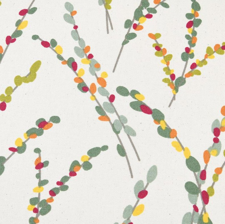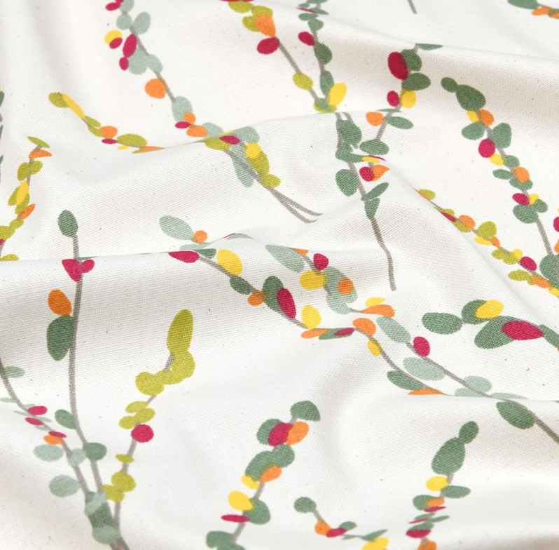 Dekostoff Vorhangstoff Brindille mit Zweigen in Natur, Grün, Rot & Gelb