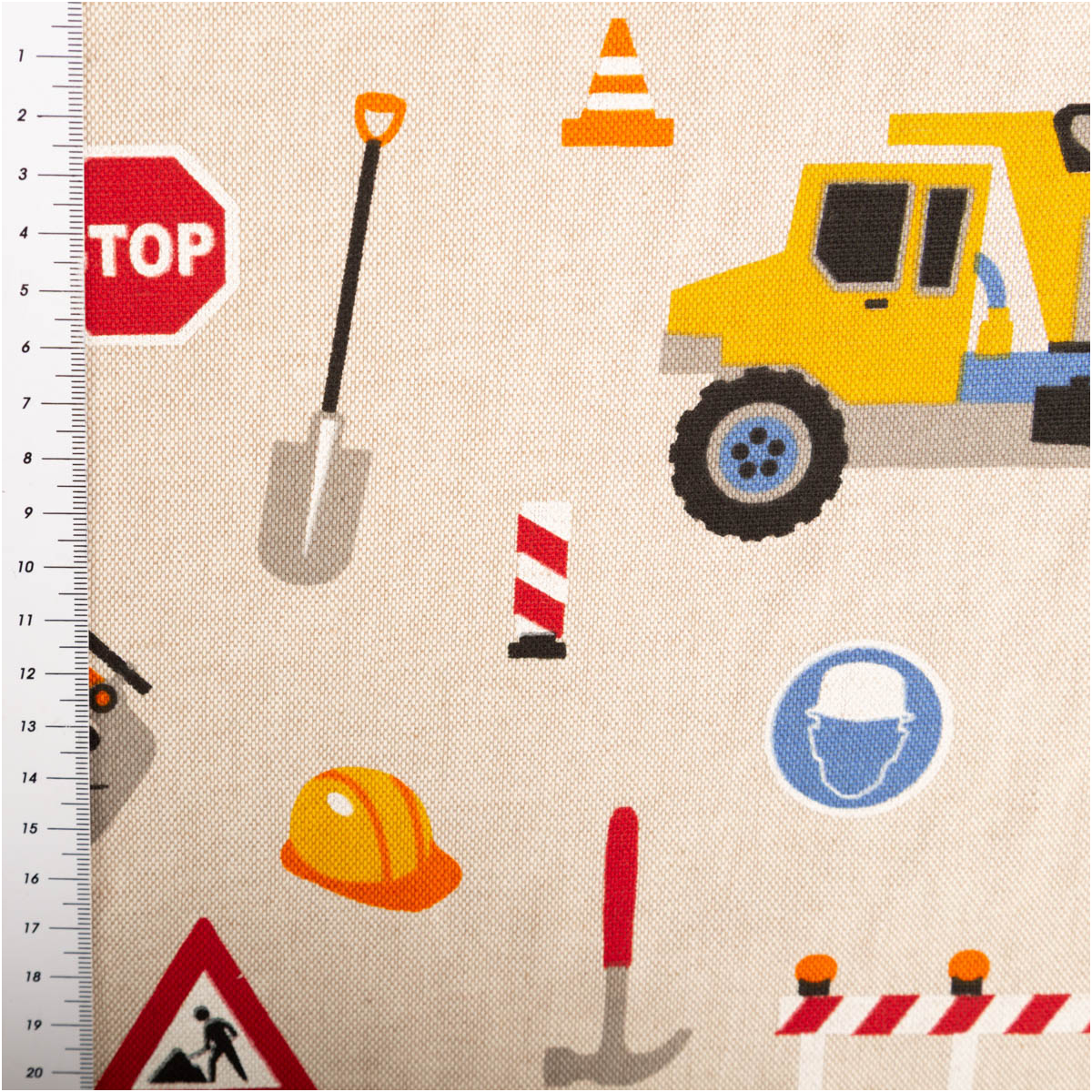 Dekostoff Baustelle Leinenlook als Meterware in Natur und Bunt