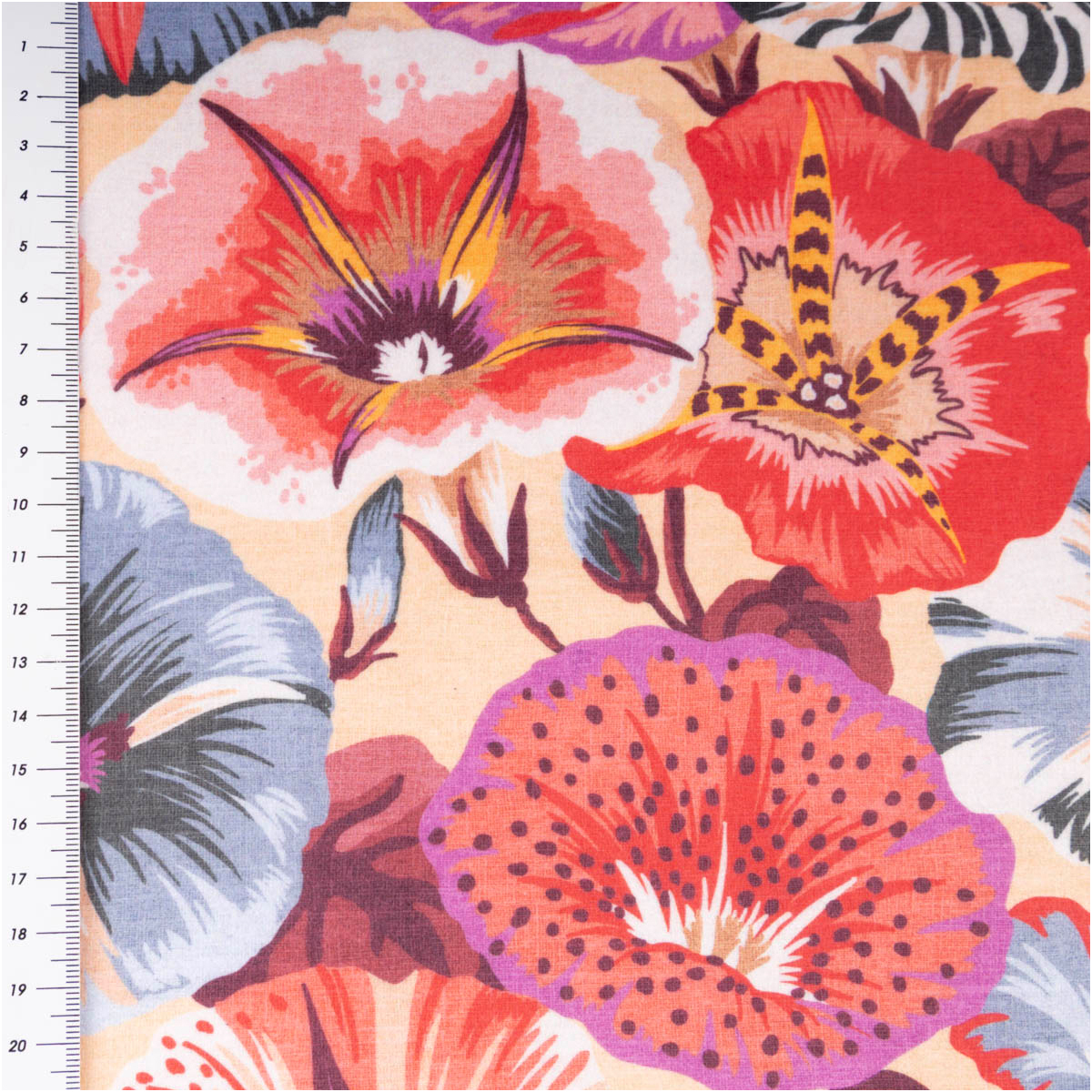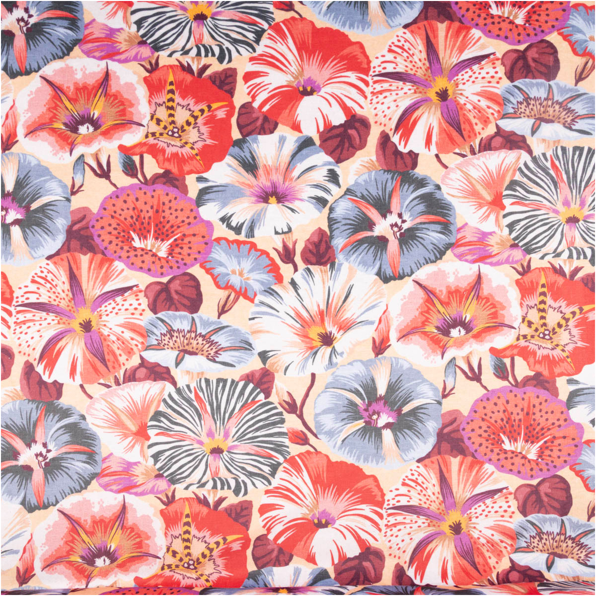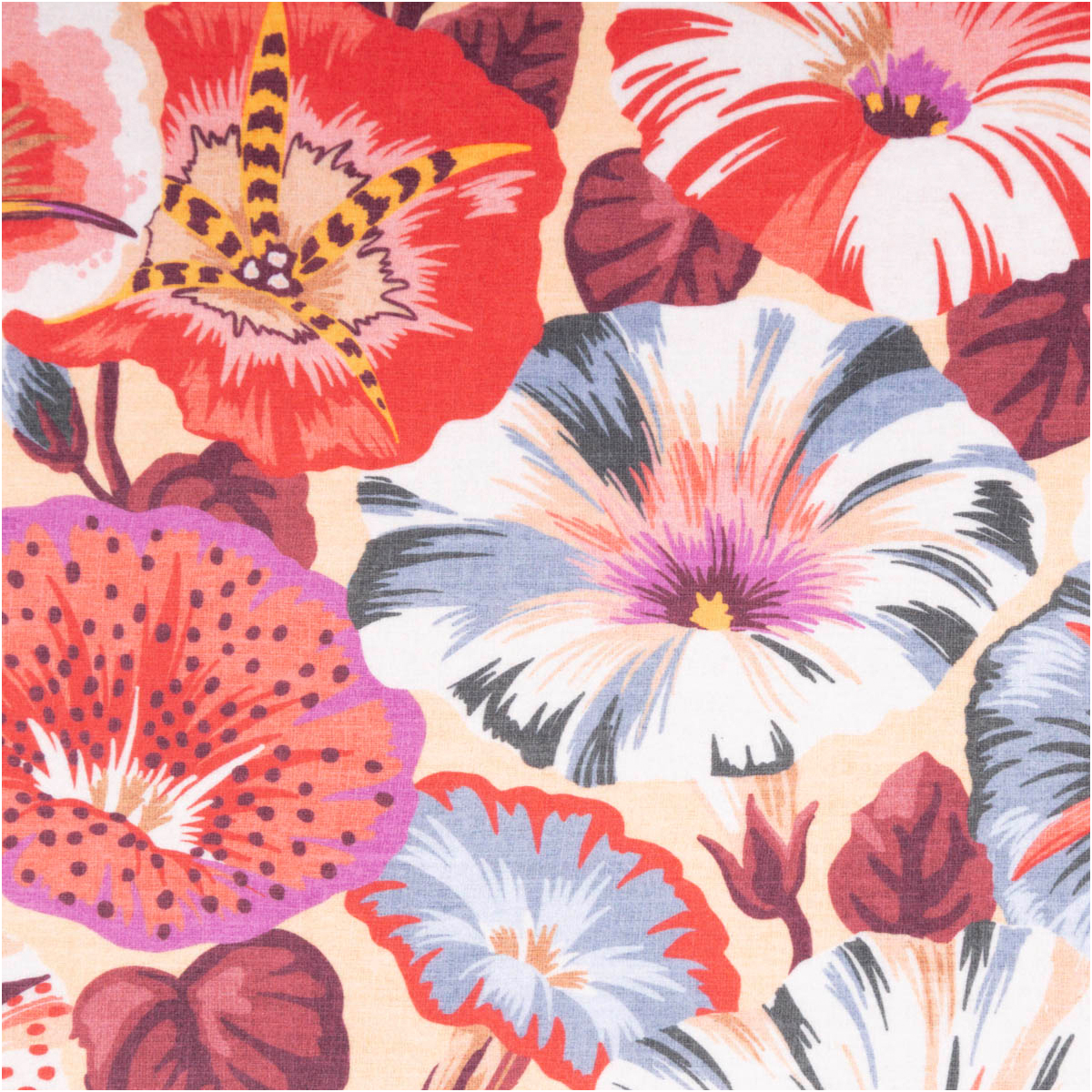 Bringe Luxus und Gemütlichkeit in dein Zuhause mit dem hochwertigen Samtstoff Antonella! Das extravagante französische Dessin mit großen bunten Blüten auf sandfarbigem Grund verleiht jedem Raum eine besondere, stilvolle Note. Die samtig-weiche Haptik und der dezente Glanz machen diesen Stoff ideal für exklusive Wohnprojekte.