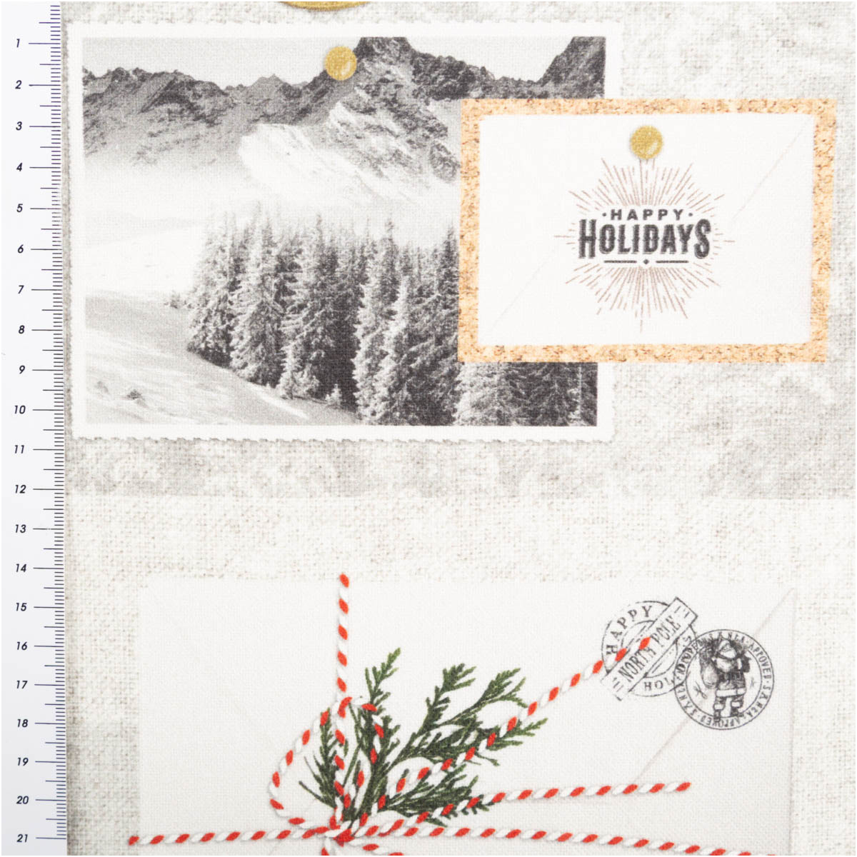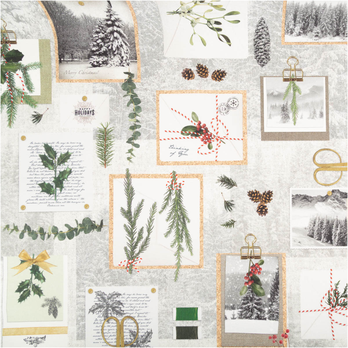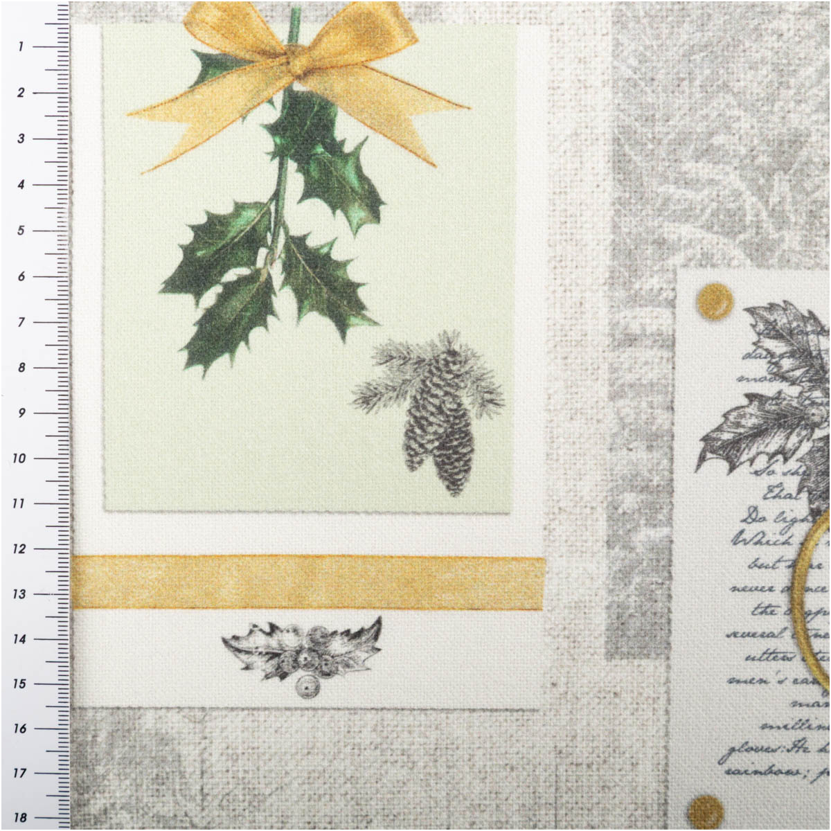 Dieser hochwertige Baumwollstoff Misty Stories bringt festliche Stimmung in dein Zuhause. Mit seinem grau marmorierten Hintergrund, den grünen Tannenzweigen und einem natürlichen, weihnachtlichen Vintage-Design ist er die perfekte Wahl für deine Weihnachtsprojekte.