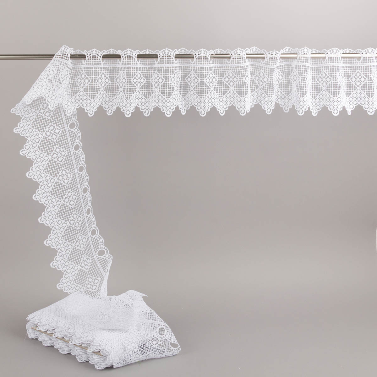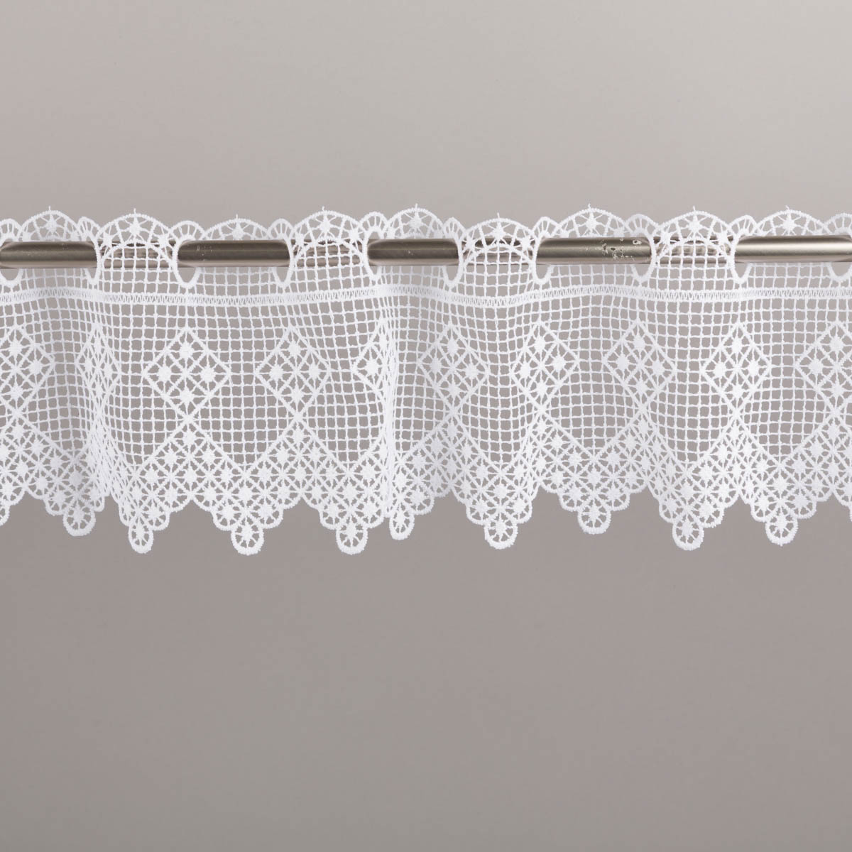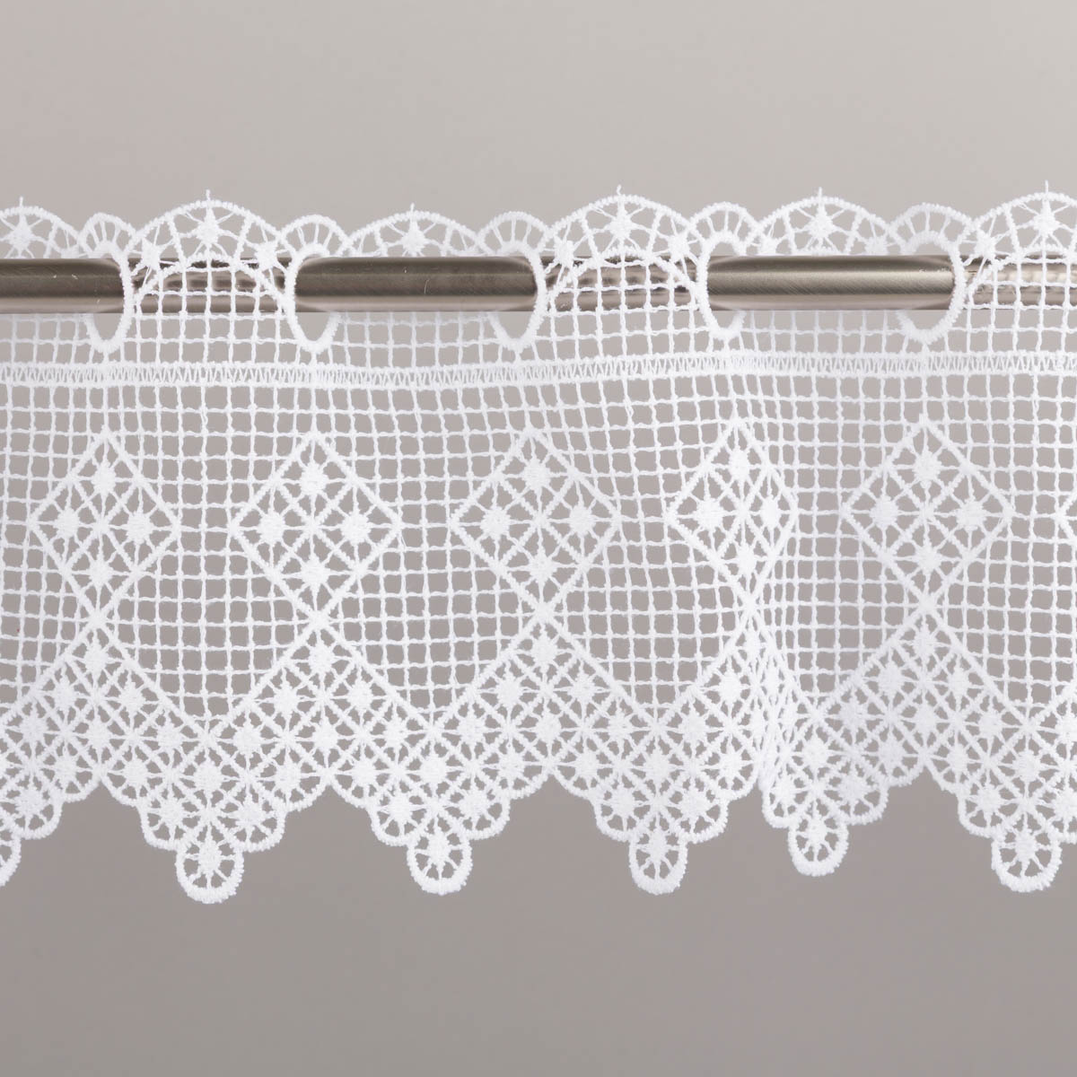 Scheibengardine Häkelspitze Stickerei Pik Karo weiß 16 cm Breite