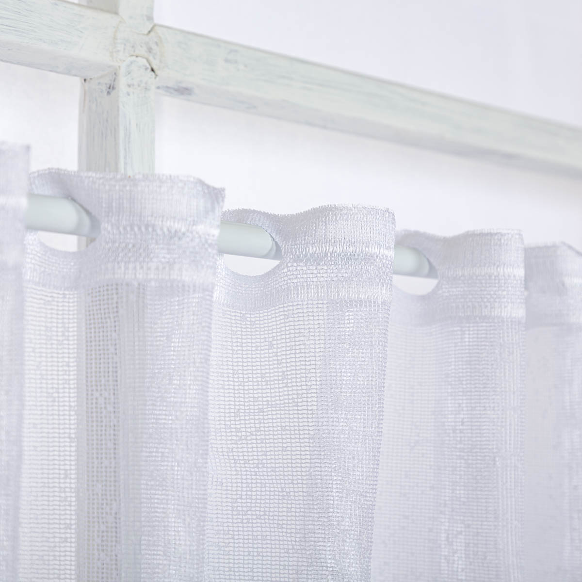Die Montage ist ebenso unkompliziert: Die eingearbeiteten Aufhängelöcher ermöglichen es dir, die Gardine mühelos auf eine Scheibenstange zu schieben – fertig ist deine neue Fensterdekoration!