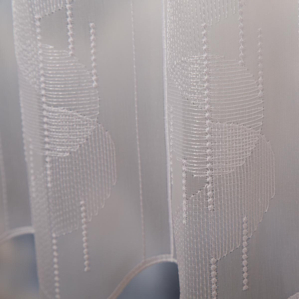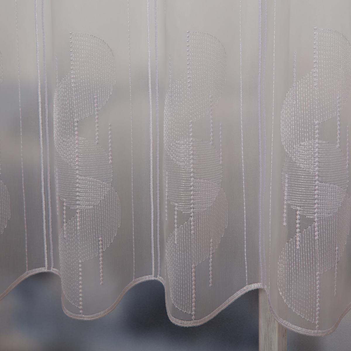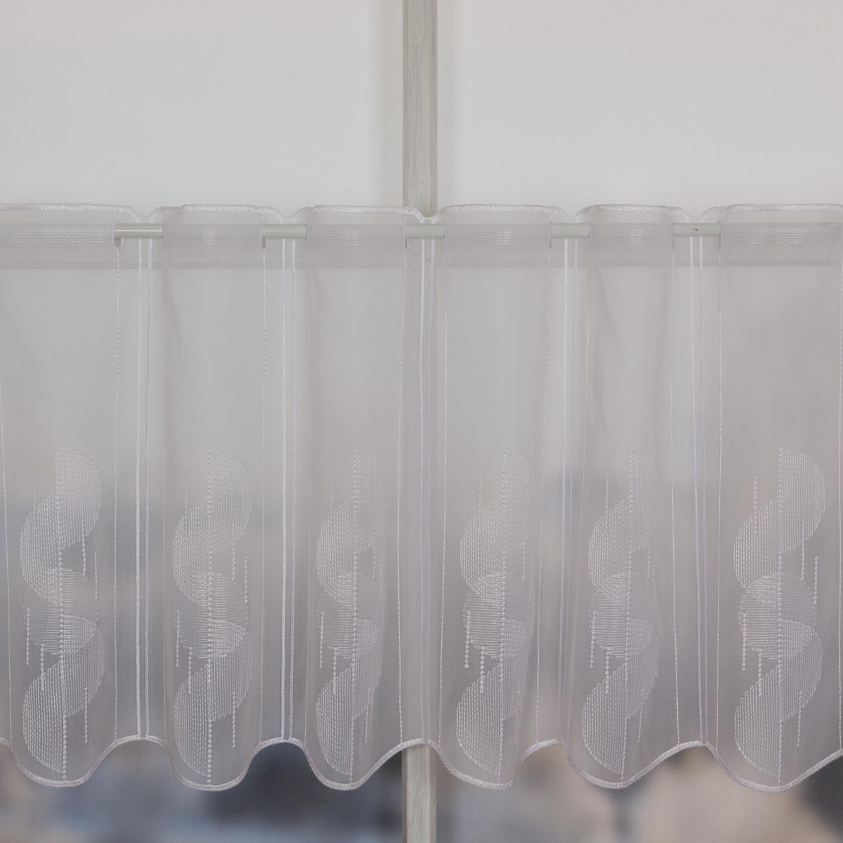 Weiße Scheibengardine aus leichtem, transparentem Voile mit moderner Kreis- und Streifenstickerei