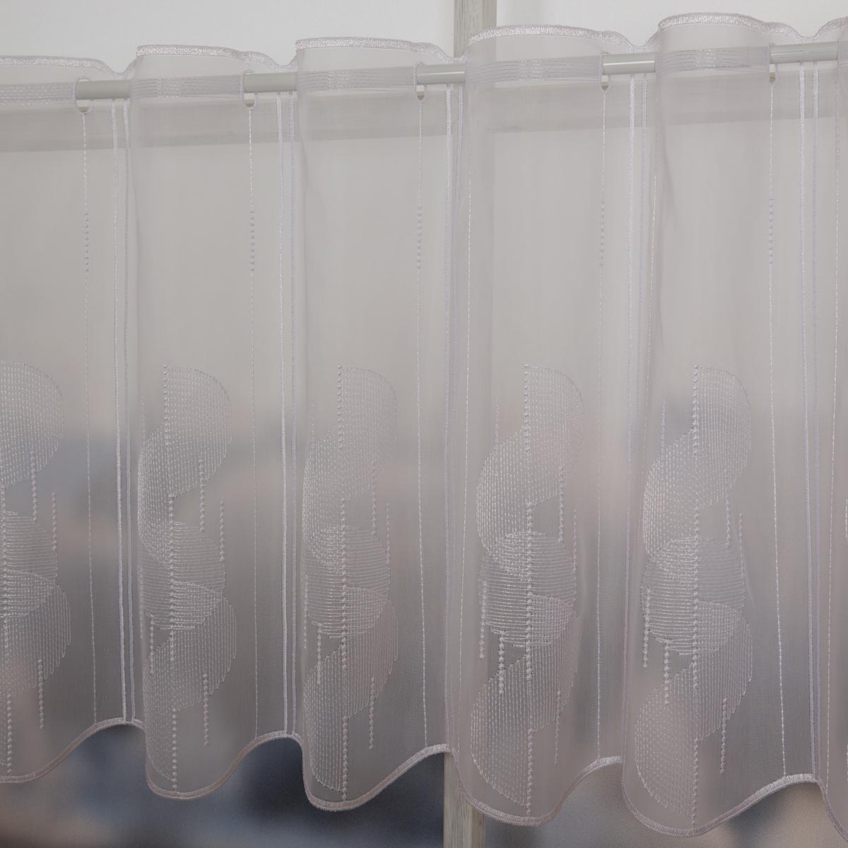 Scheibengardinen-Meterware nähfrei – Stickerei Kreise & Streifen weiß (45 cm Höhe)