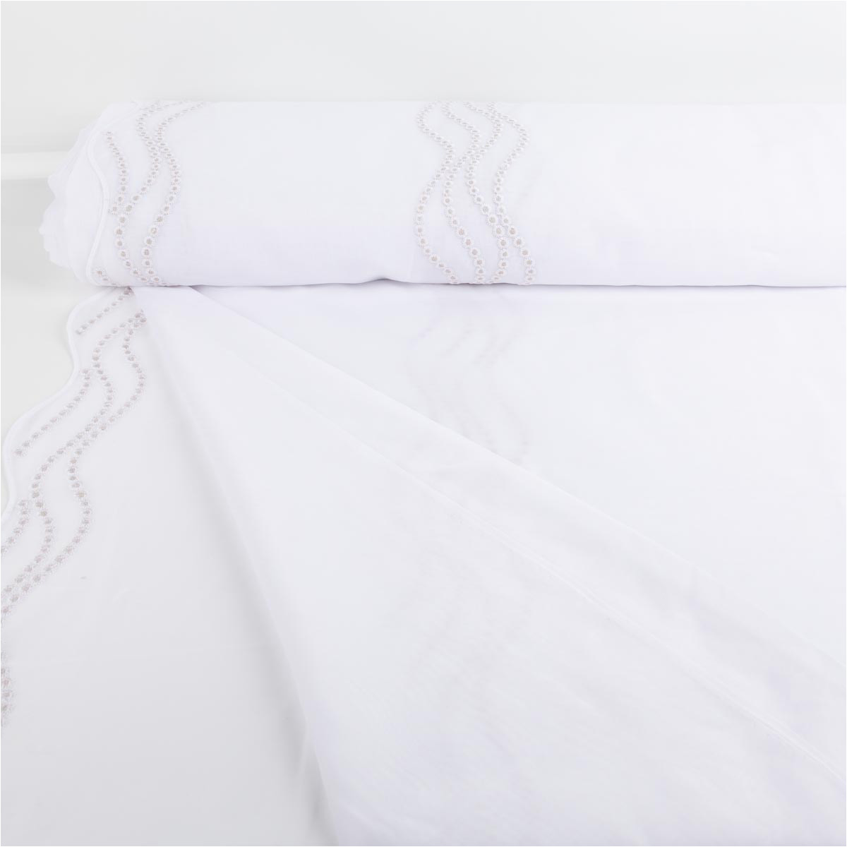 Voile in Weiß mit beigefarbiger Pünktchen-Stickerei