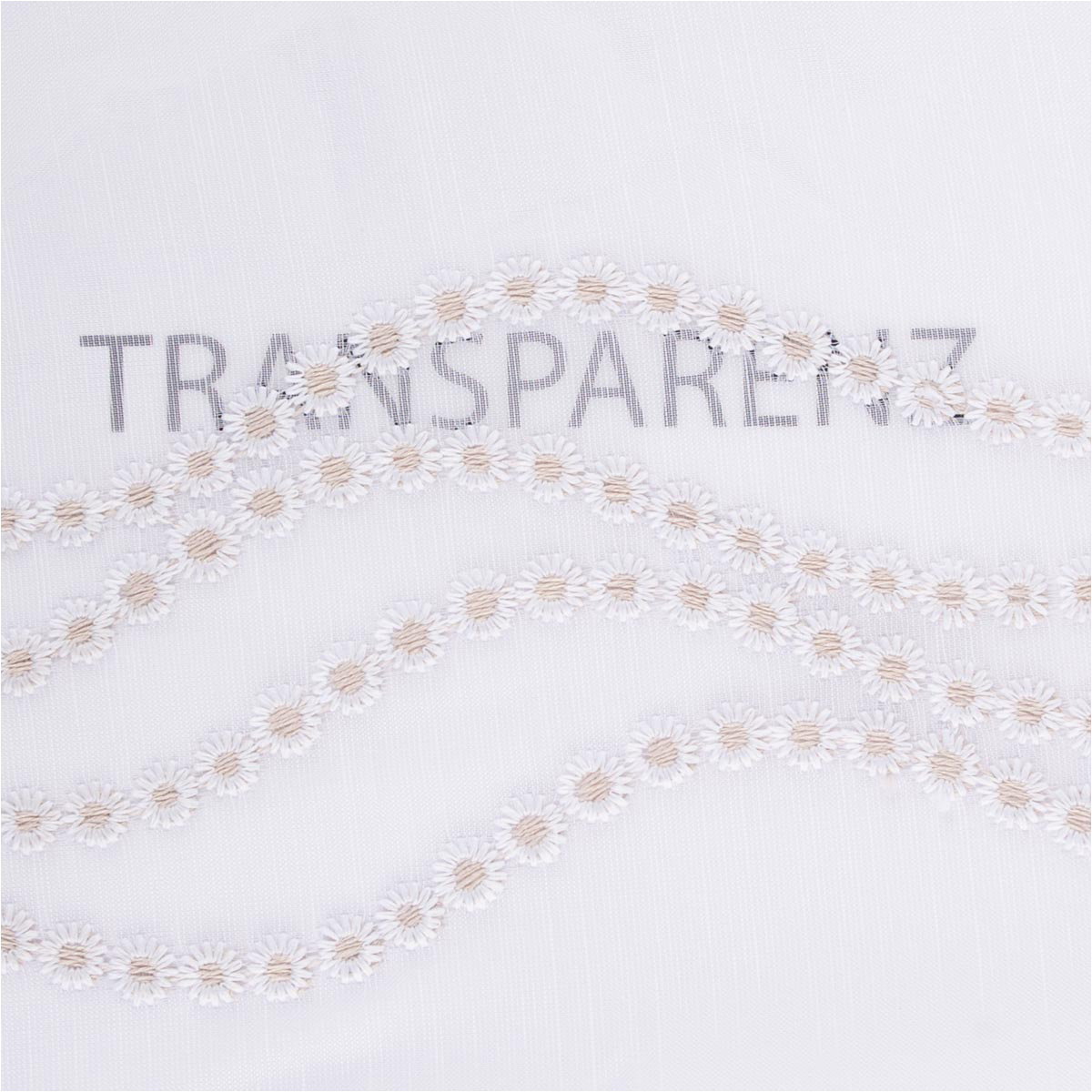 Transparenter Voile in Weiß mit feiner Pünktchen-Stickerei in Beige und dekorativer Bogenkante