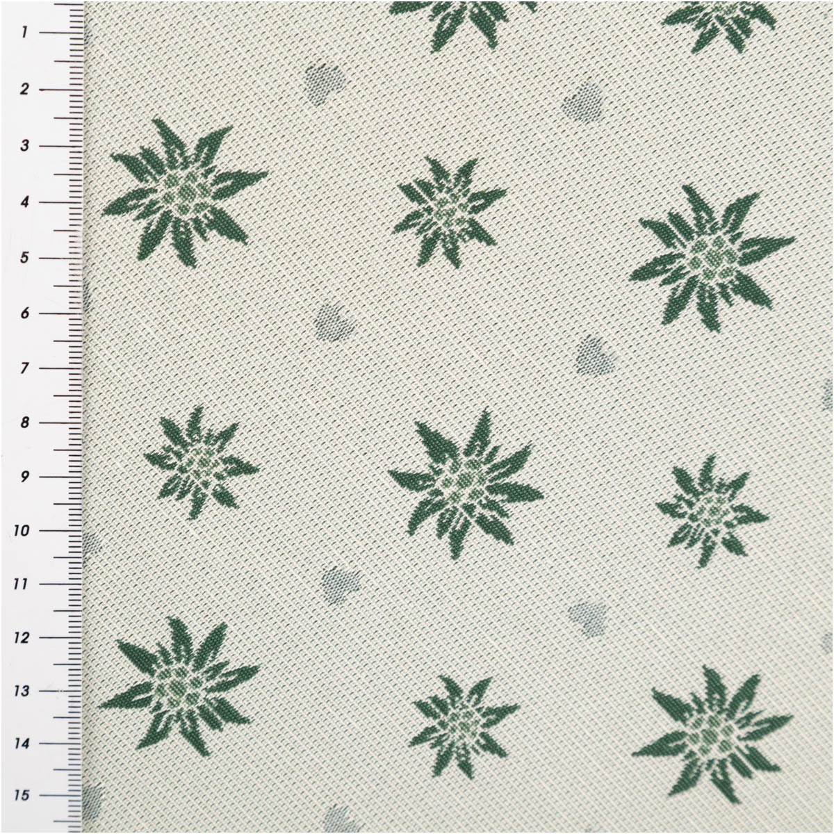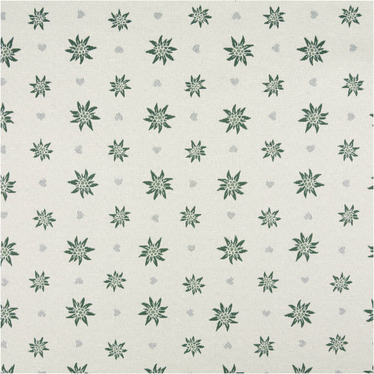 Doubleface Jacquard: beidseitig verwendbar, vorn grüne Edelweißblüten auf Ecru, hinten helle Blüten auf Grün