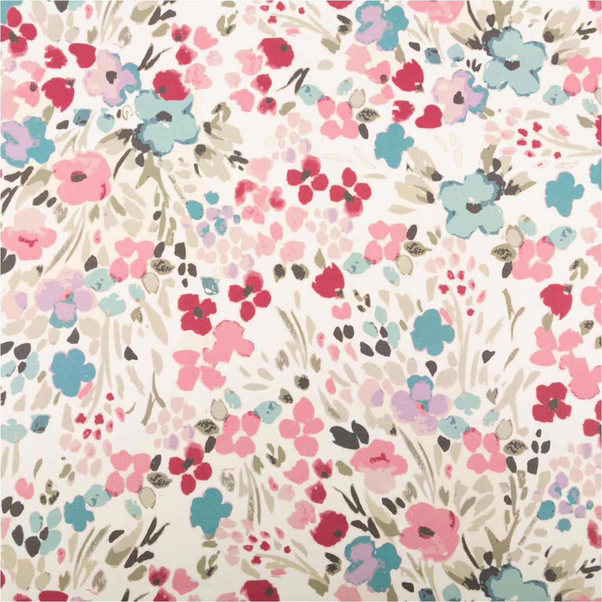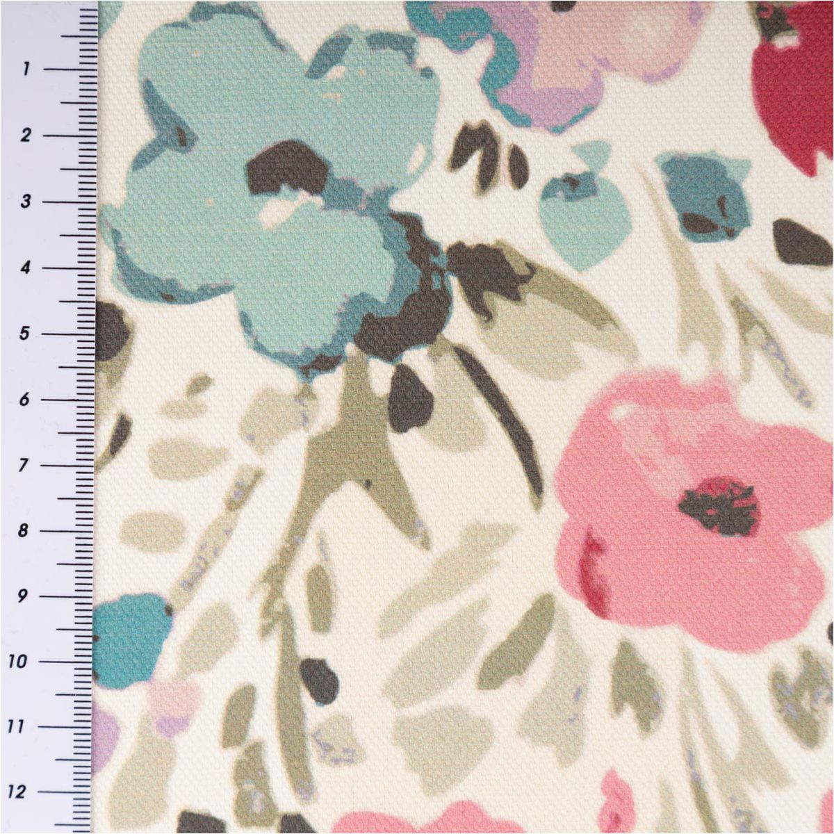 Dieser wunderschöne Dekostoff bringt mit seinem romantischen Aquarell-Blütendessin frischen Wind in dein Zuhause. Die sanften Farben in Rosa, Blau und Violett auf weißem Grund wirken lebendig und harmonisch zugleich – ideal für kreative Wohnideen mit natürlichem Charme.