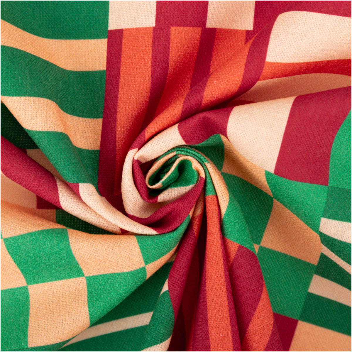 Baumwollstoff Dekostoff Halbpanama Digitaldruck Graphic Block Line rot grün 1,40m Breite