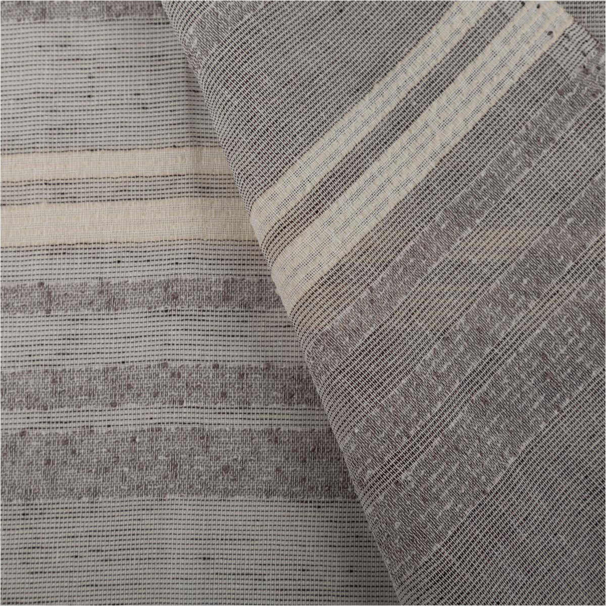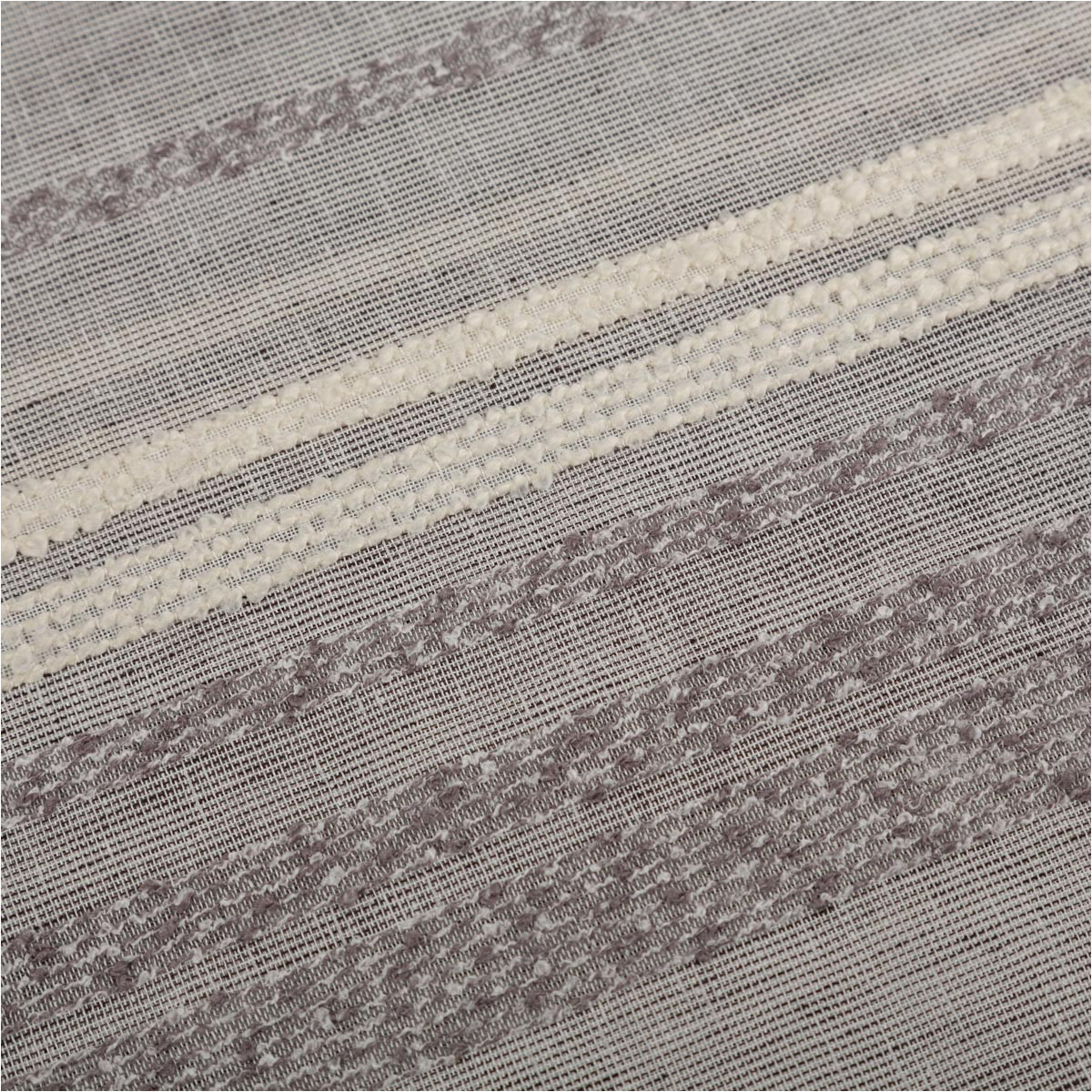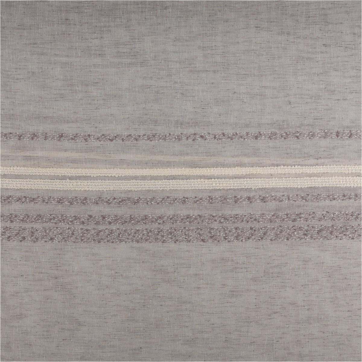 Dieser hochwertige Gardinenstoff aus transparentem Voile verbindet natürliche Struktur in meliertem Grau mit rustikalen, eingewebten Bouclé-Streifen in Grau und Wollweiß. Dadurch entsteht ein dezentes, strukturiertes Streifendessin, das sich harmonisch in viele Einrichtungsstile einfügt – ob modern, skandinavisch oder natürlich.