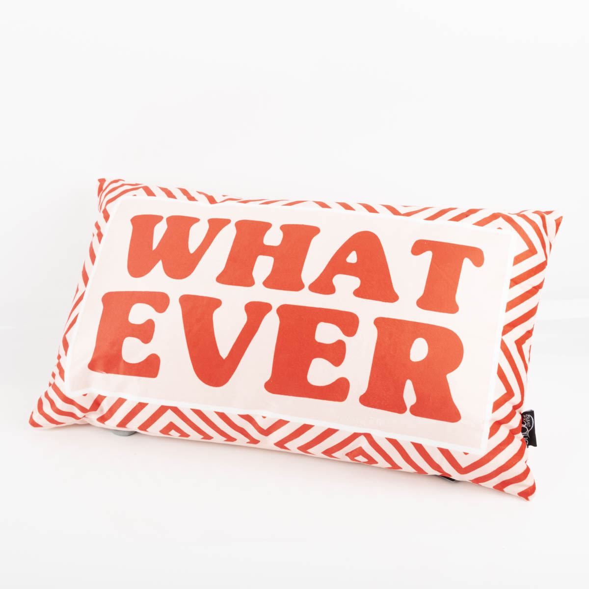 • Trendiges Statement-Kissen mit rotem „WHATEVER“-Print auf rosa Grund