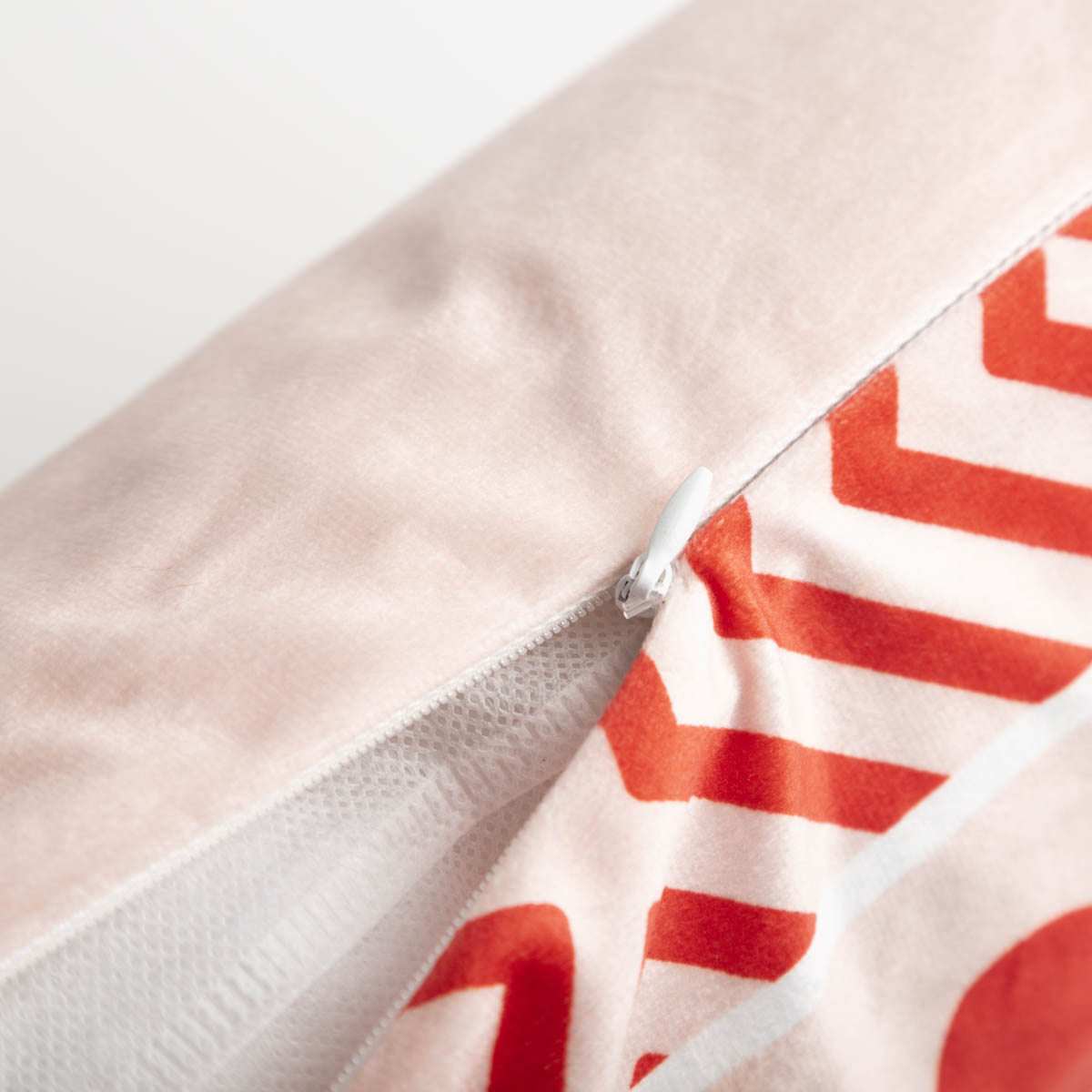 • Rückseite uni rosa, mit verdecktem Reißverschluss unten