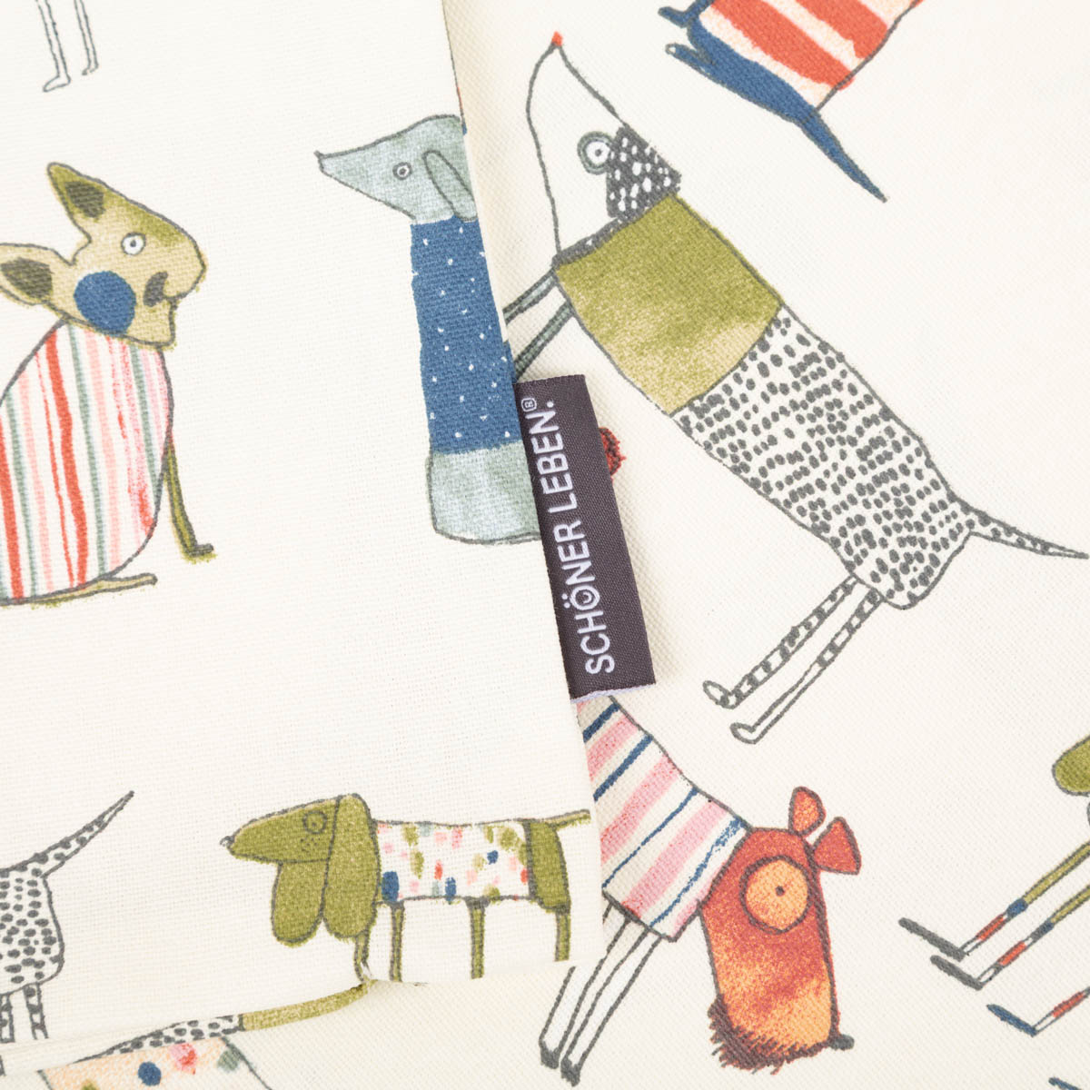 Kissenhülle aus Baumwolle mit Hunden beige bunt in versch. Größen von SCHÖNER LEBEN.