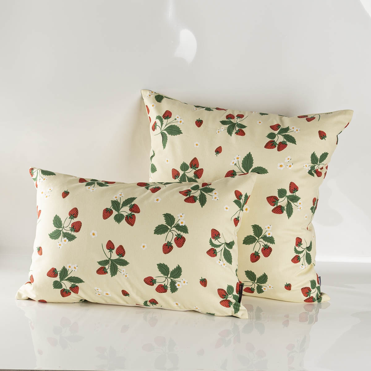 Wunderschöne Kissenhülle mit Erdbeer-Print aus Baumwolle in verschiedenen Größen oder nach Maß von SCHÖNER LEBEN.