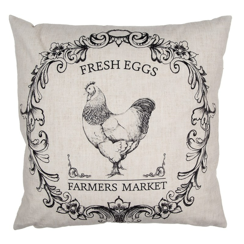 Kissenhülle Vintage Hahn Farmers Market beige schwarz 45x45cm von Clayre & Eef