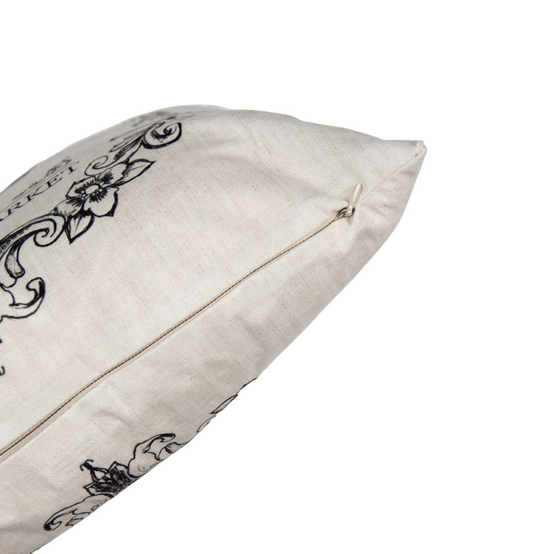 Der fein gezeichnete Hahn wird von einer ornamentalen Umrahmung begleitet und verleiht der Kissenhülle einen nostalgischen Charakter. Die natürliche Farbgebung in Beige und Schwarz lässt sich vielseitig kombinieren – ideal zu Holz, Leinen, Keramik und anderen Naturmaterialien.
