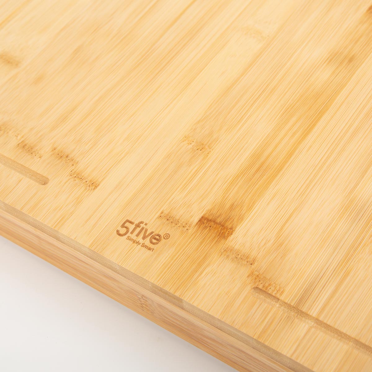 Mit diesem hochwertigen Schneidbrett aus FSC-zertifiziertem Bambus arbeitest du sauber, sicher und komfortabel. Die umlaufende Saftrille fängt Flüssigkeiten zuverlässig auf, während die integrierte Kante dafür sorgt, dass das Brett auf deiner Arbeitsfläche nicht verrutscht. So kannst du präzise schneiden, ohne ständig nachjustieren zu müssen.