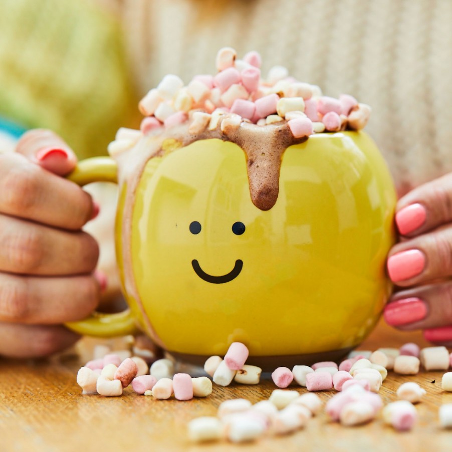 Diese fröhliche Happy Mug in sonnigem Gelb macht dir schon beim ersten Blick gute Laune. Handbemalt, angenehm griffig und perfekt für Kaffee, Tee oder heiße Schokolade – ideal für dein Zuhause im Dopamine-Décor-Trend.