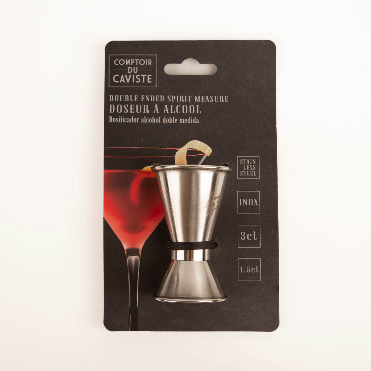 • Doppelseitige Dosierung: 3 cl & 1,5 cl