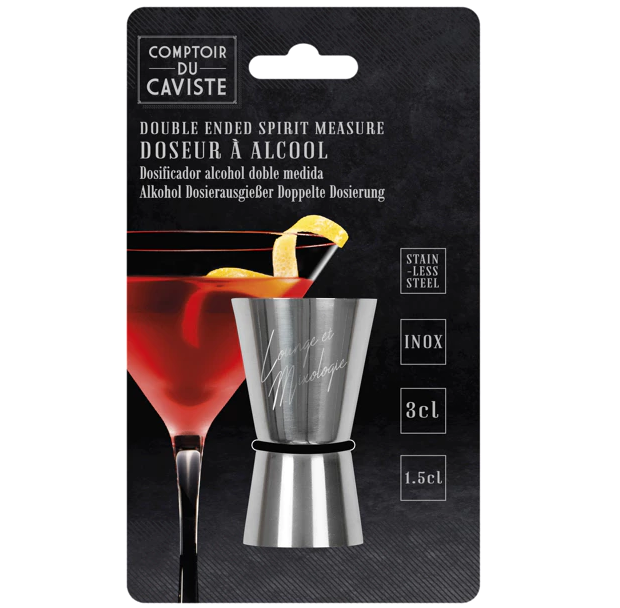 Mit diesem hochwertigen, doppelseitigen Barmaß gelingt dir jeder Cocktail auf den Punkt. Der Messbecher besteht aus robustem Edelstahl, liegt angenehm in der Hand und bietet dir zwei präzise Dosiergrößen: 3 cl und 1,5 cl. Ideal für klassische Drinks, kreative Eigenkreationen oder das exakte Nachmixen von Rezepten.