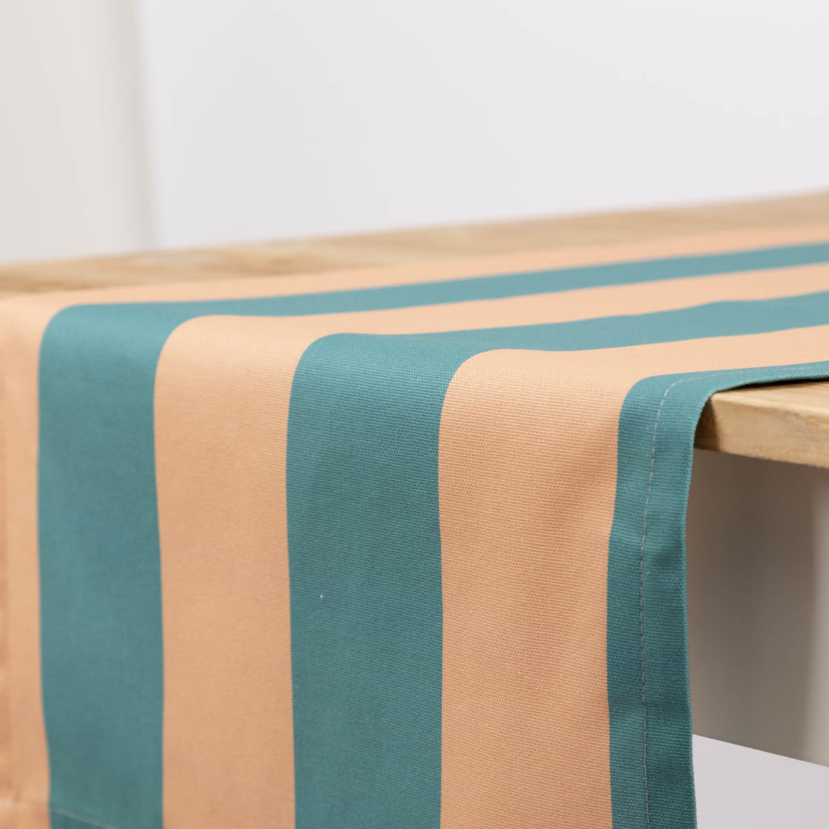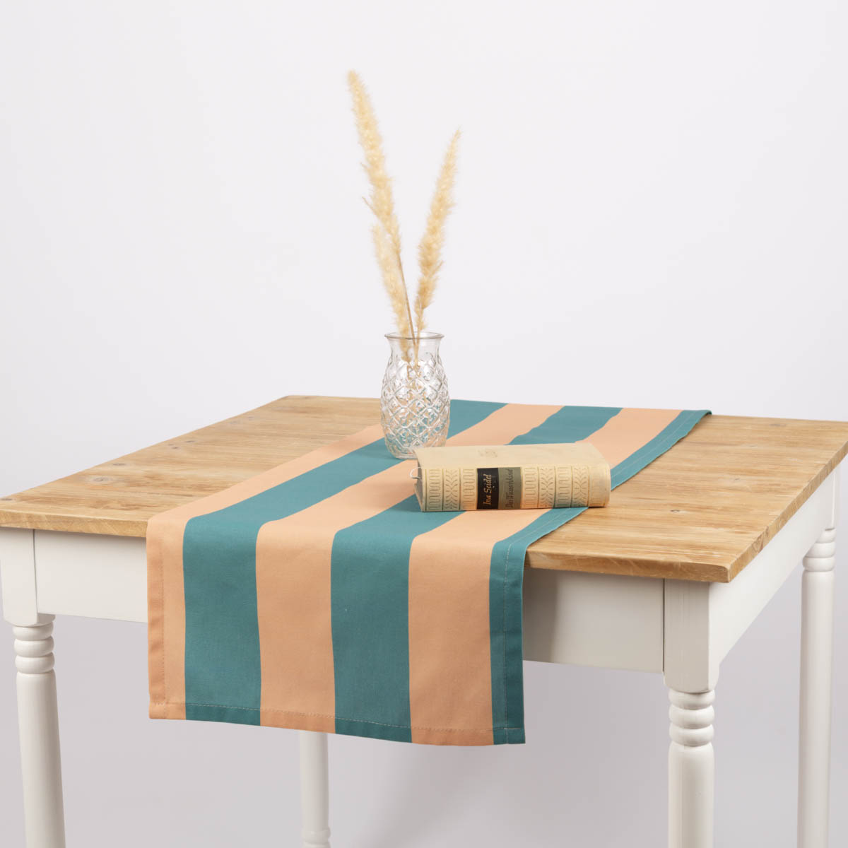 Tischläufer aus Baumwolle mit Streifen in Apricot und Grün (40x160cm) – handgefertigt in Deutschland, Teil der SCHÖNER LEBEN. Kollektion