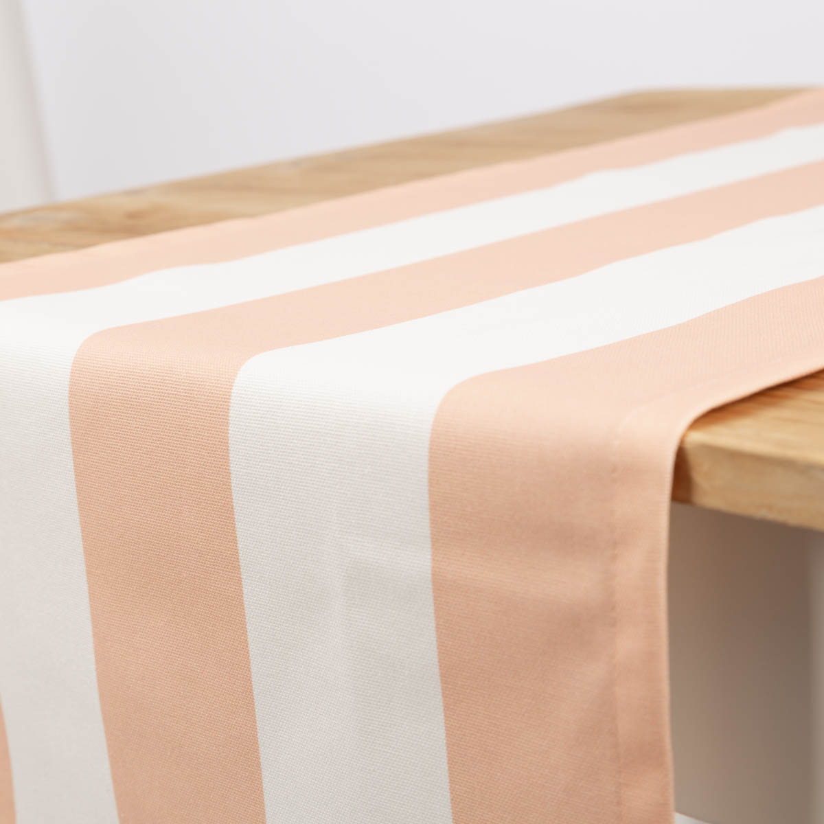 Tischläufer aus Baumwolle mit Streifen in Peach und Ecru (40x160cm) – handgefertigt in Deutschland, Teil der SCHÖNER LEBEN. Kollektion