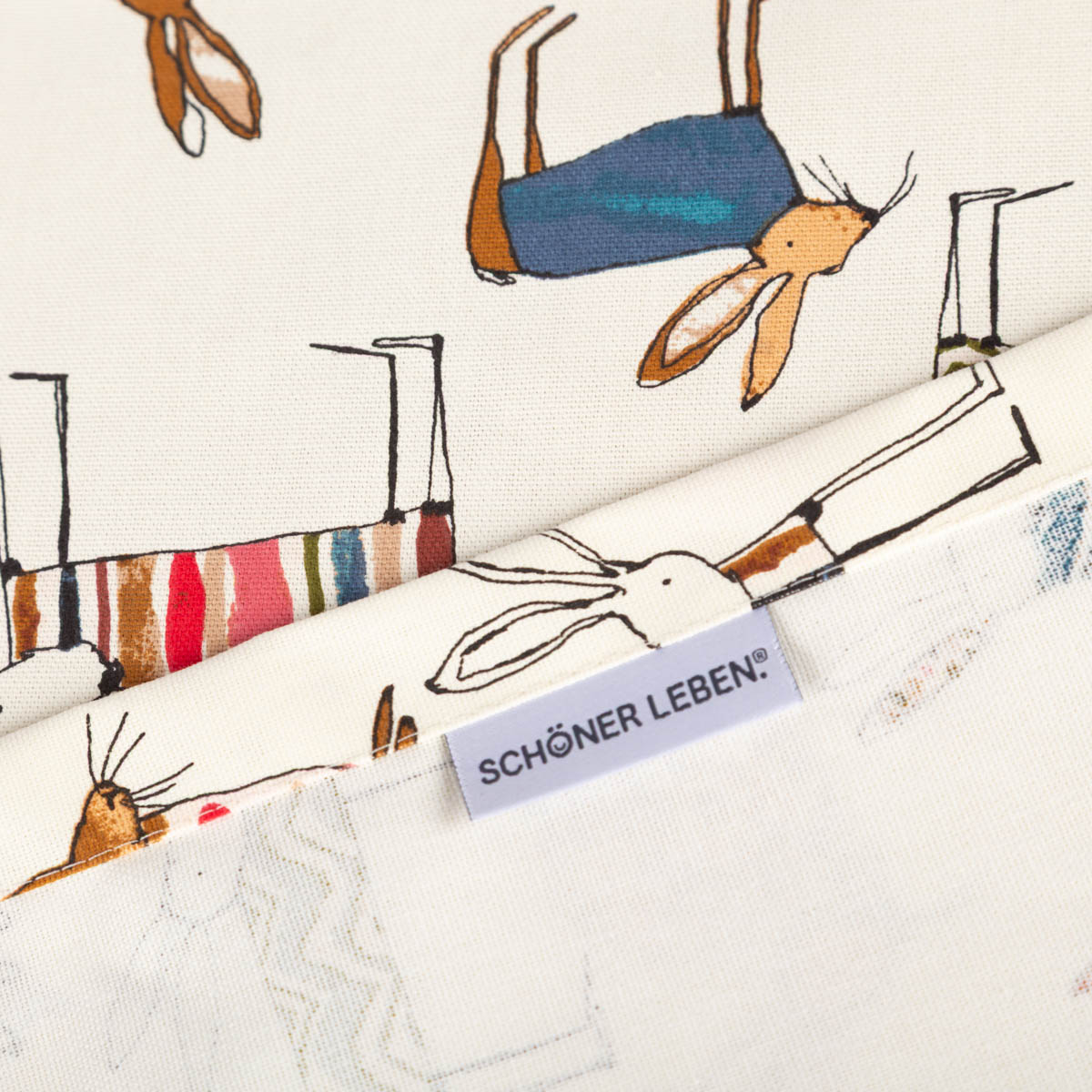 Mitteldecke Tischdecke aus Baumwolle mit Hasen beige bunt in versch. Größen von SCHÖNER LEBEN.