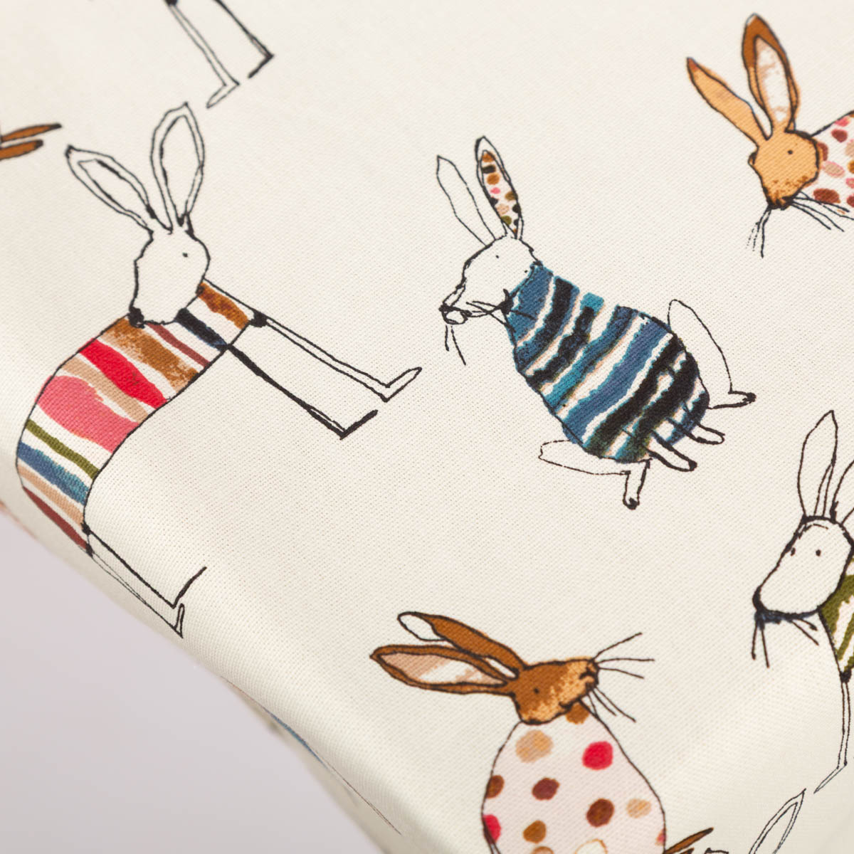 Hasen-Print: Das einzigartige Dessin mit liebevoll gezeichneten Hasen in warmen, bunten Farbtönen setzt stylische Akzente auf deinem Tisch. Ein Muss für große und kleine Hasenfans!
