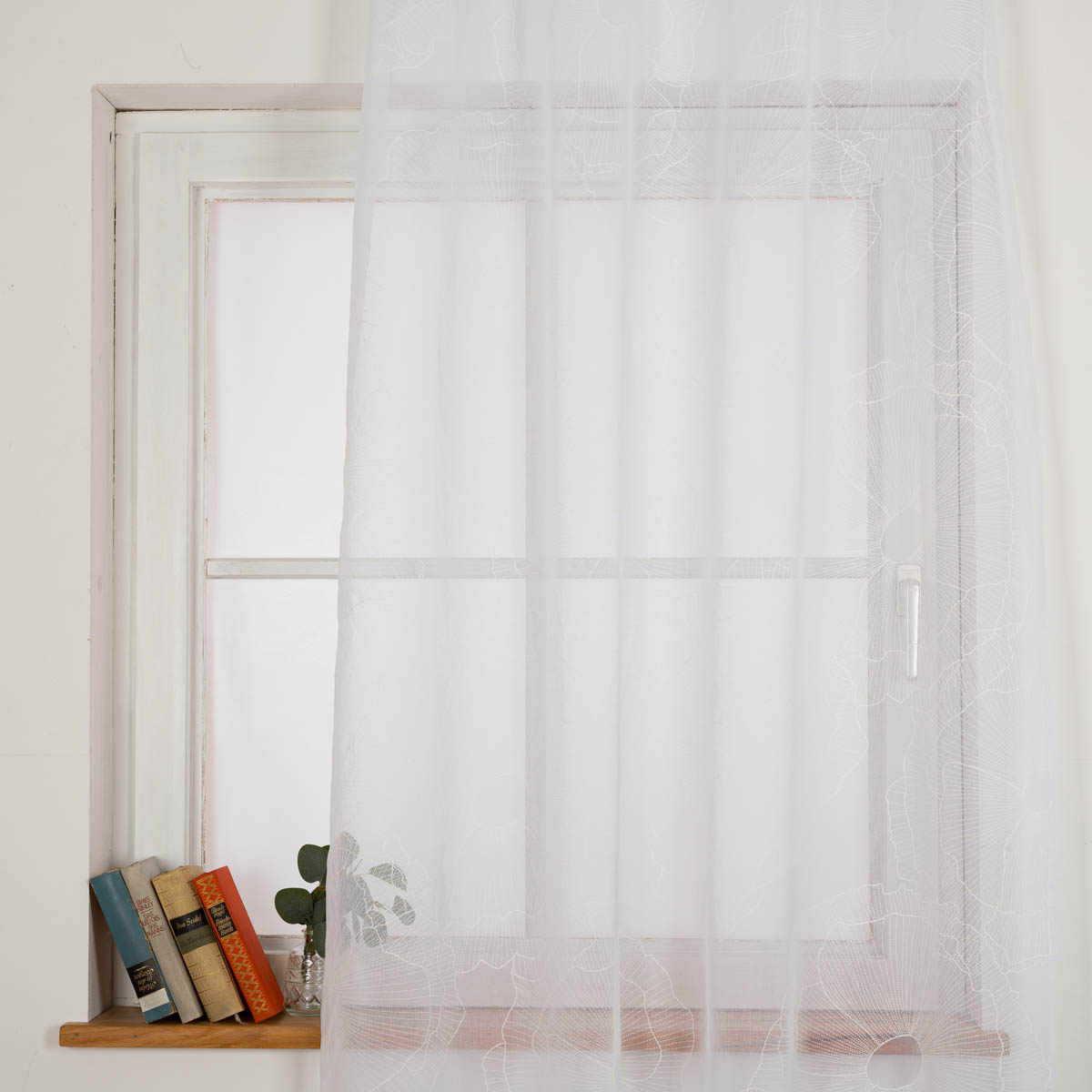 Der transparente Ösenvorhang mit großen 3D Blumen aus Frankreich ist ein Schmuckstück für deine Fenster! Die Gardine aus transparentem Voile in frischem Weiß fällt leicht und duftig und sorgt tagsüber für Sicht- und Blendschutz ohne das Tageslicht zu schlucken. Das Blumendessin ist mit 3D Strukturprint auf das Gewebe aufgebracht.