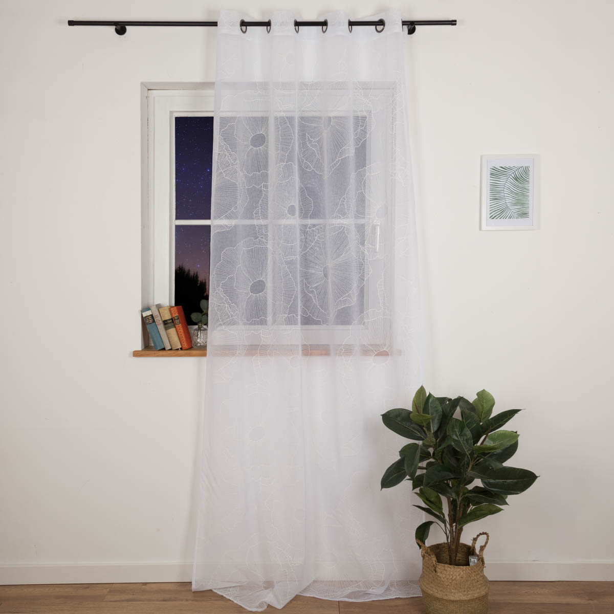 Wunderschöner transparenter Ösenvorhang mit abstrakten Blüten im 3D Print in Weiß 140x260cm