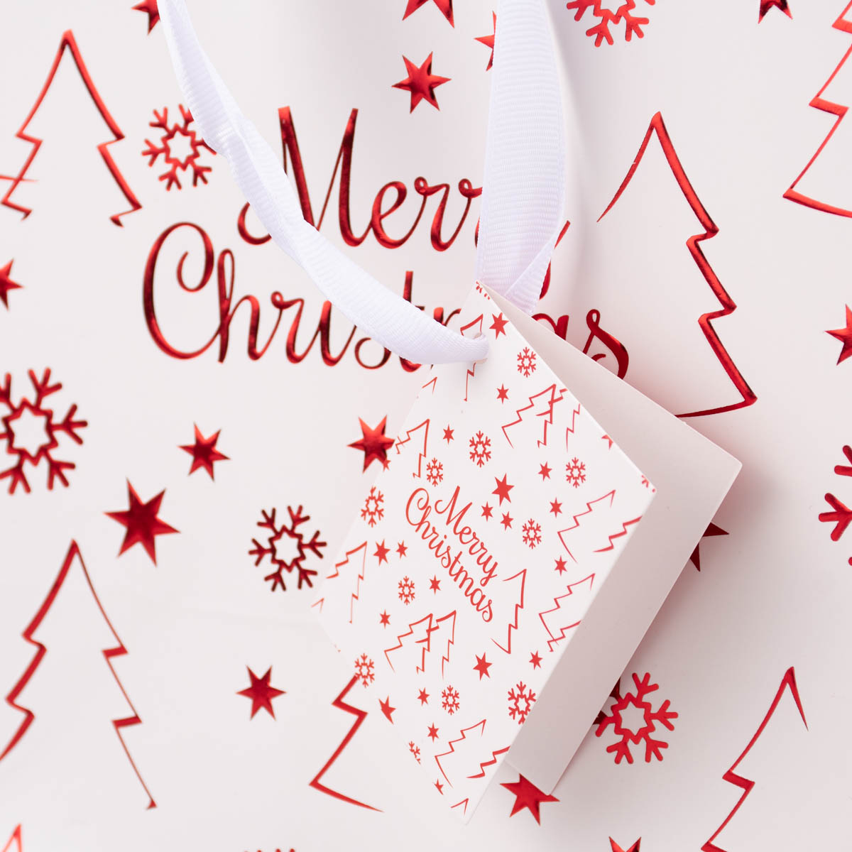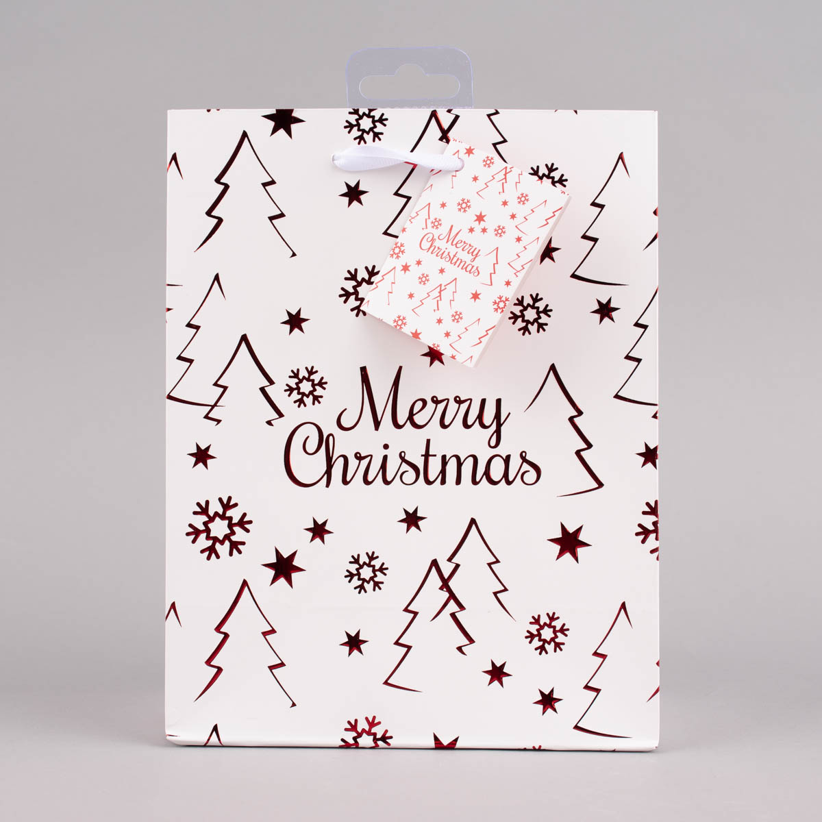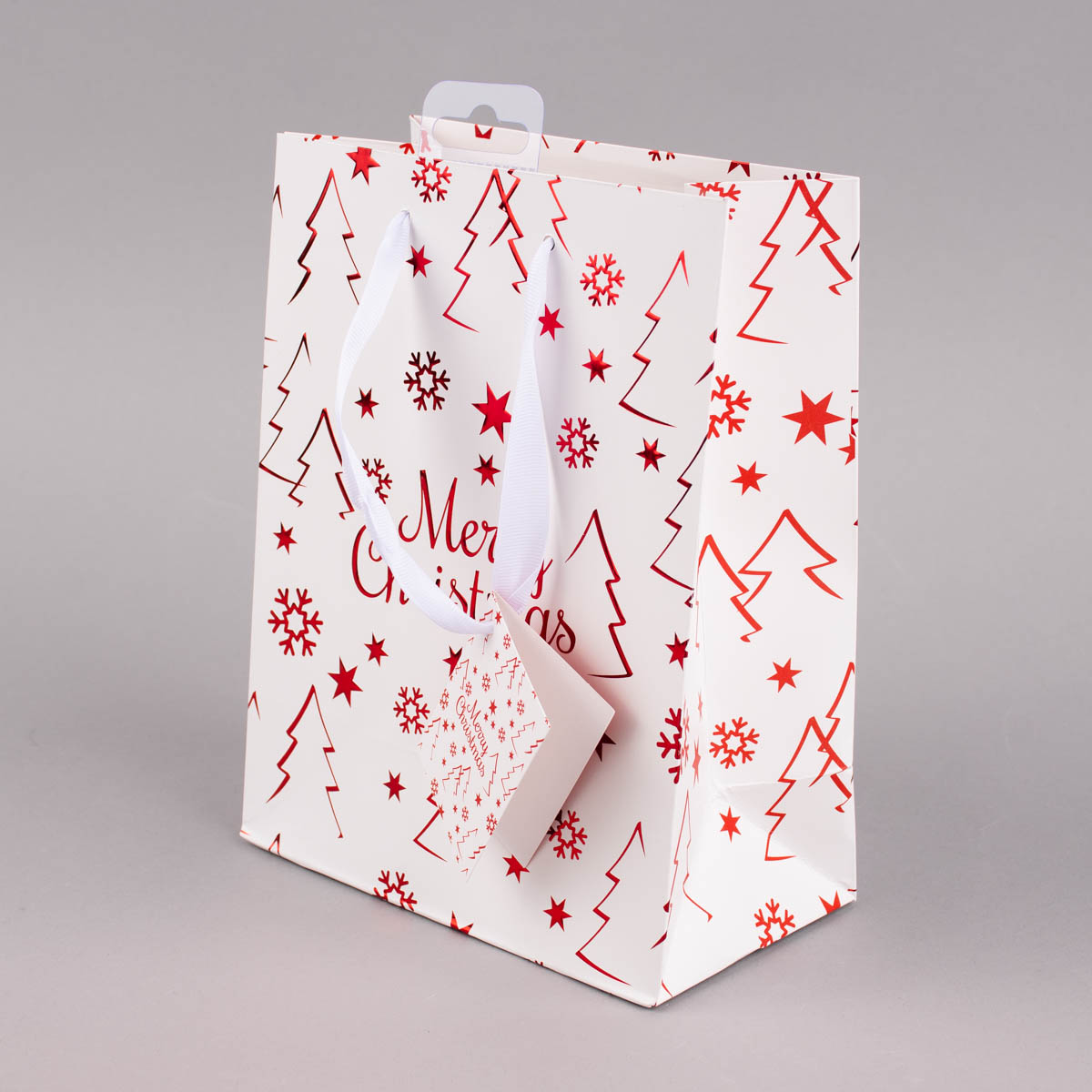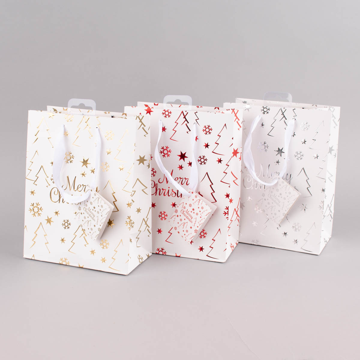 Geschenktasche mit Foliendruck Merry Christmas Tannenbaum weiß 18x23x10cm verschiedene Farben