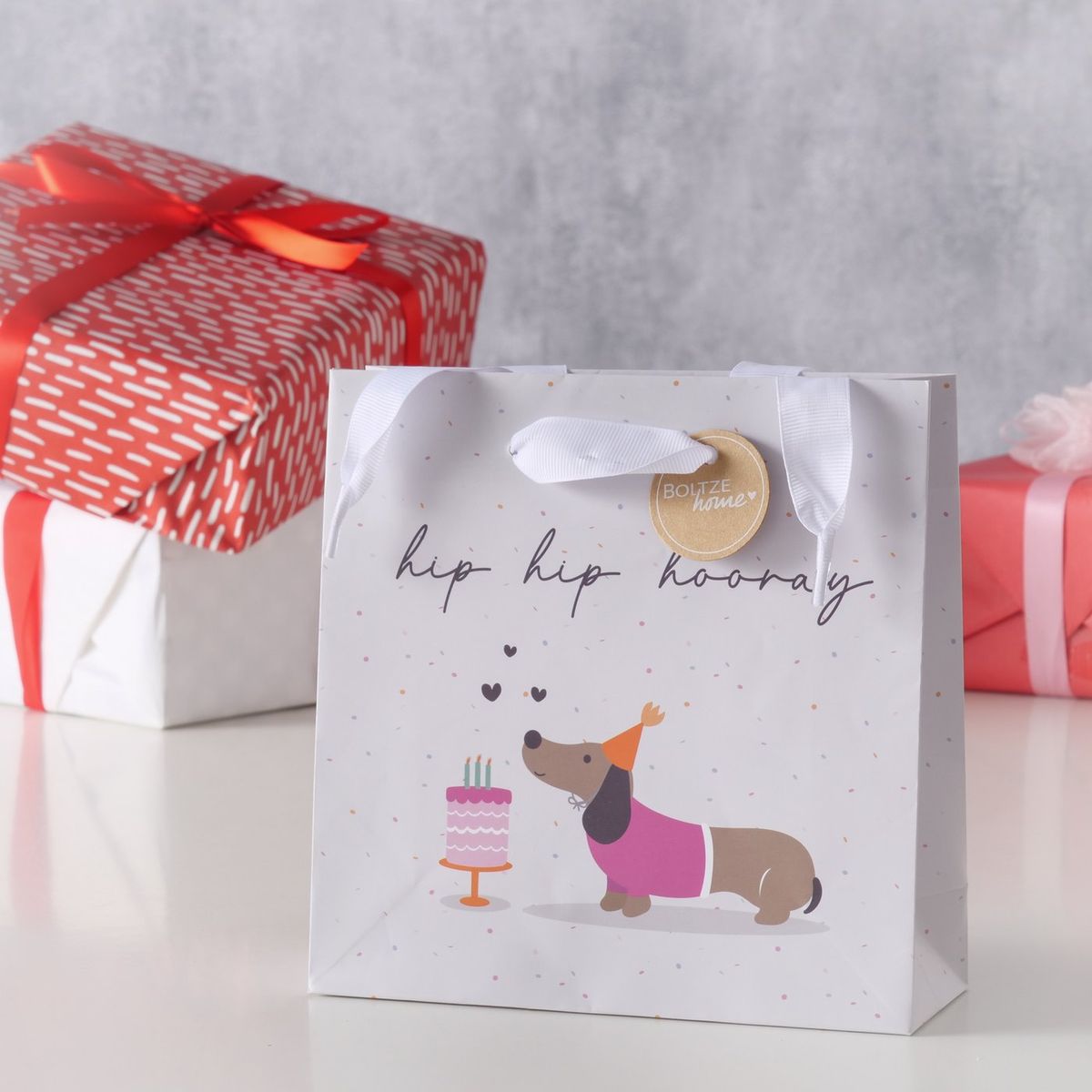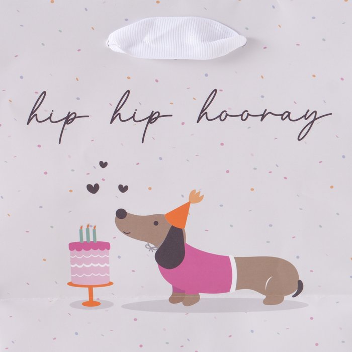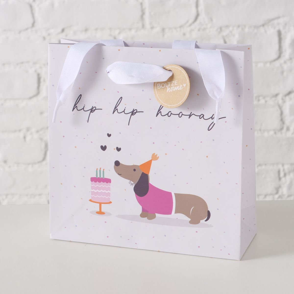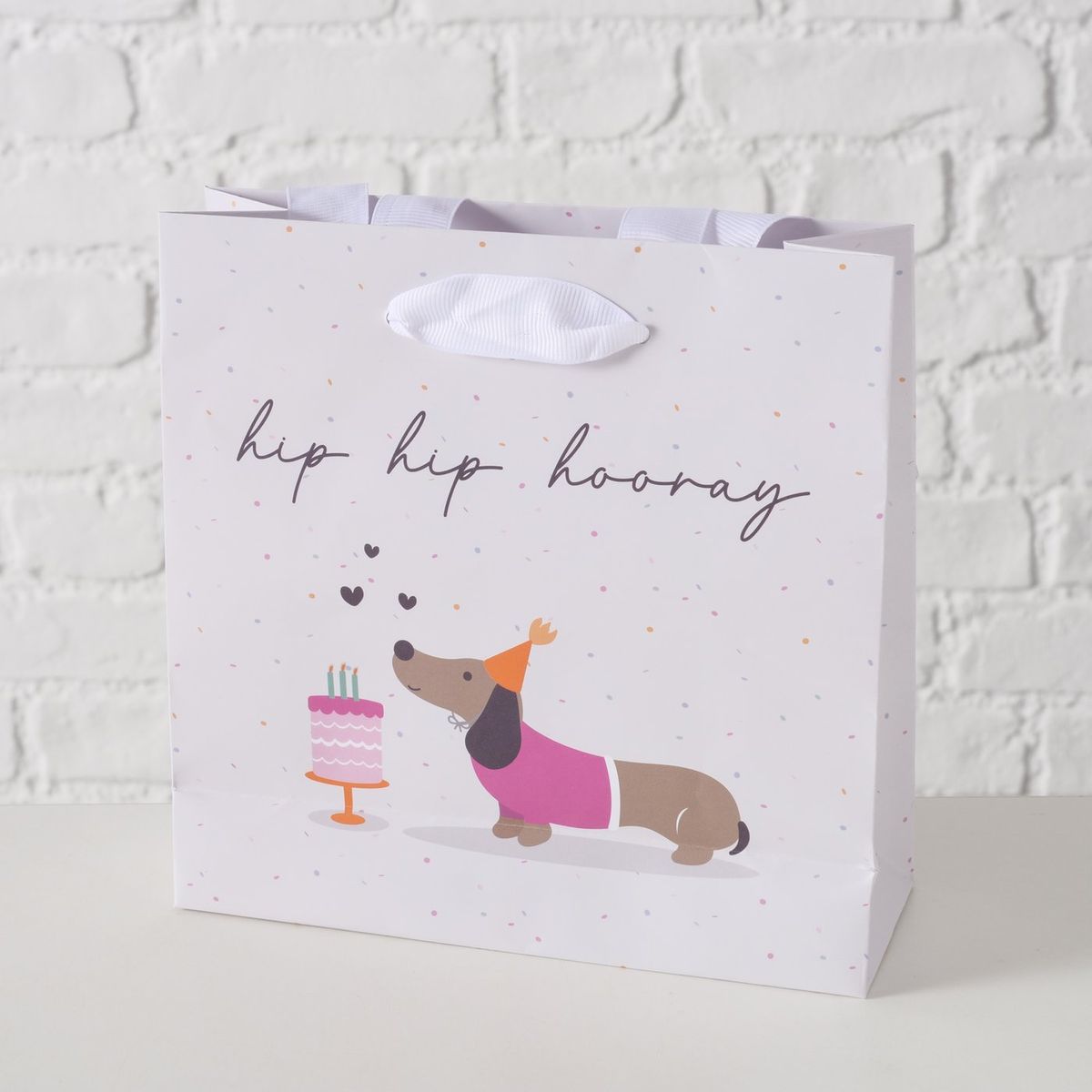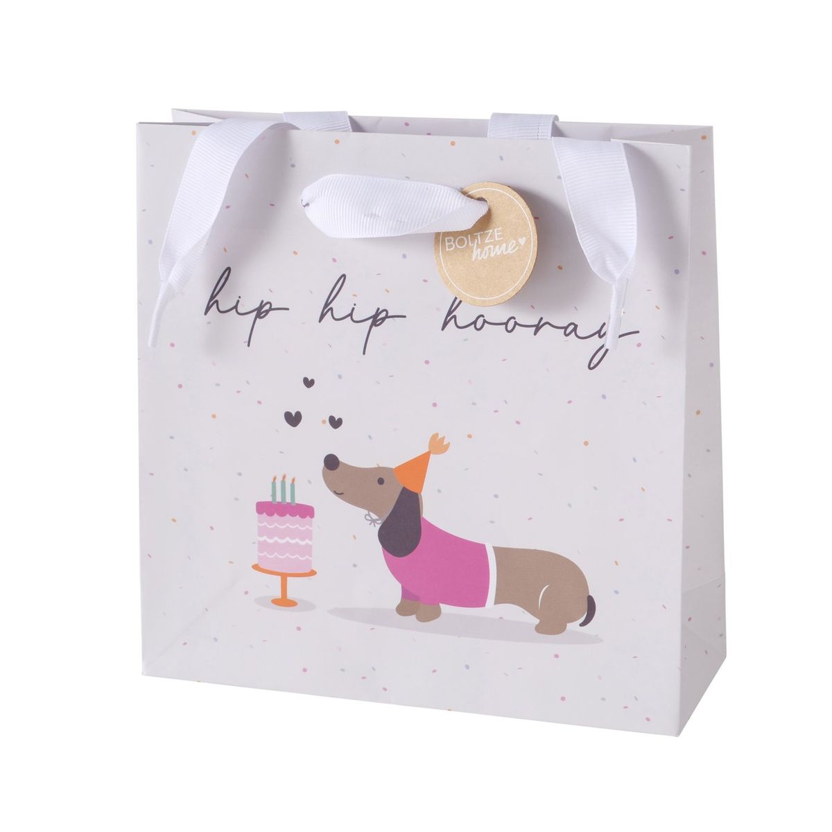 Geschenktüte Hip Hip Hooray mit Dackel und Torte 17x6x17cm