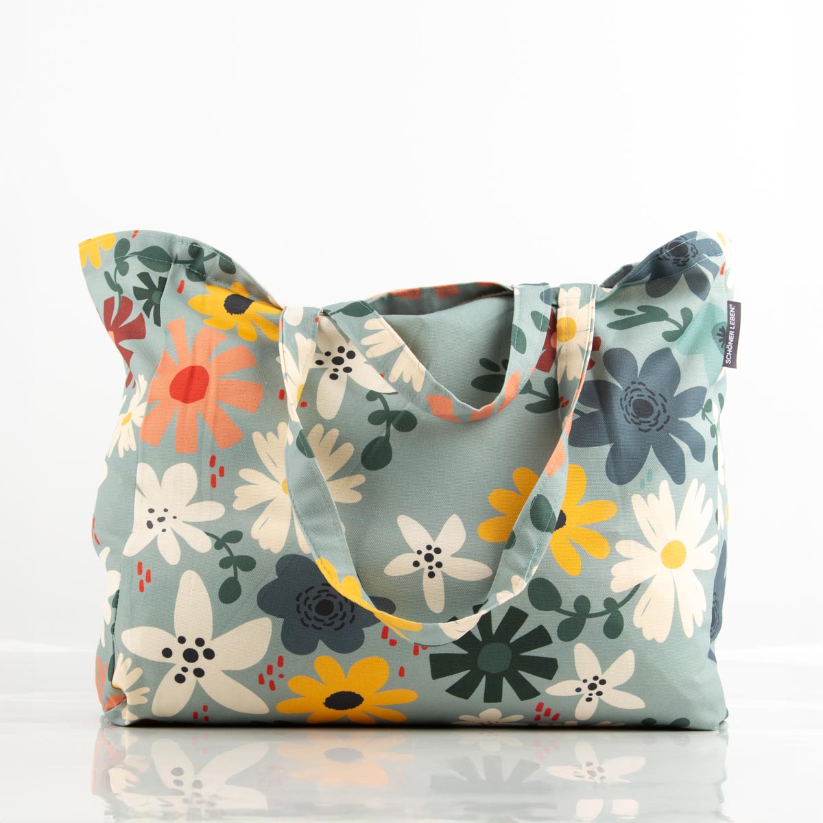 Tasche Shopper aus Baumwolle Blüten mint von SCHÖNER LEBEN.