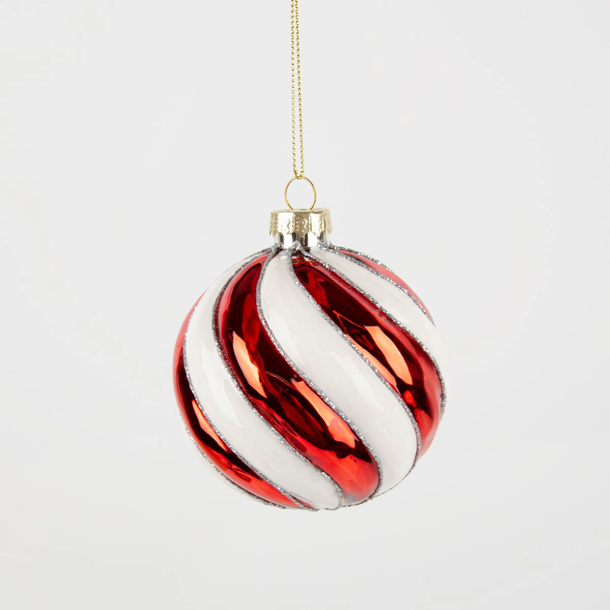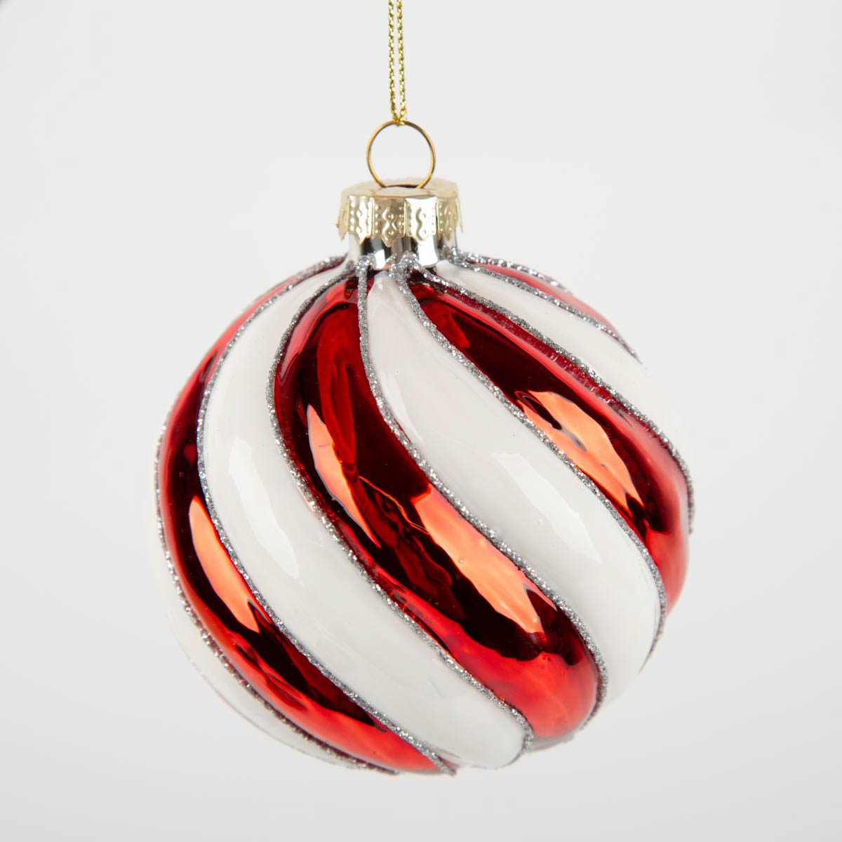 Der rot-weiß gestreifte Look erinnert an eine leckere und für Weihnachten typische Zuckerstange. Er passt mit seiner Farbgebung und den glitzernden Details perfekt in deine traditionelle Weihnachtsdekoration. Schmücke deinen Weihnachtsbaum oder einzelne Zweige mit der stylischen Glaskugel und sorge für einen echten Blickfang.
