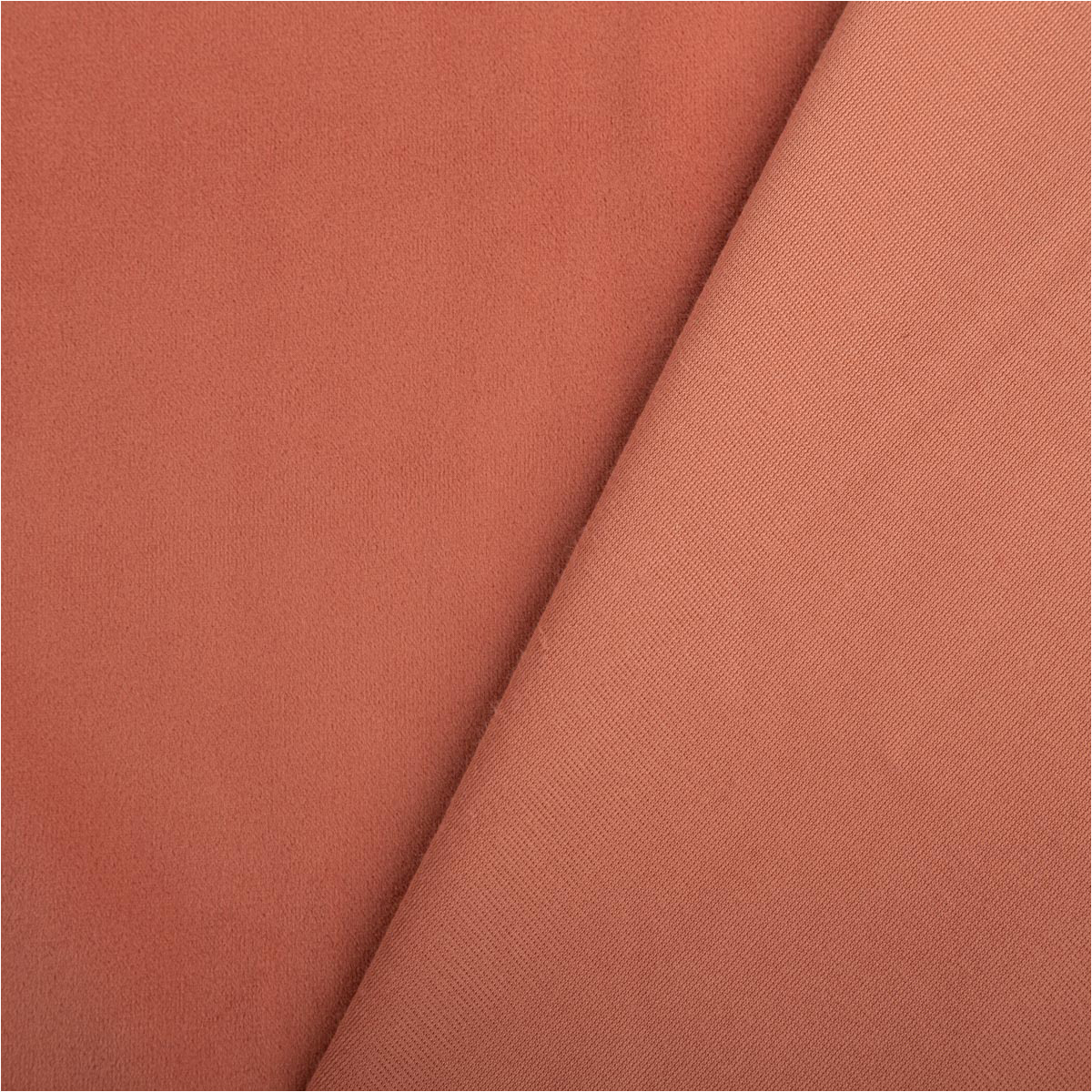 Edle Samtoptik mit weichem Griff und warmem Lachsrot
