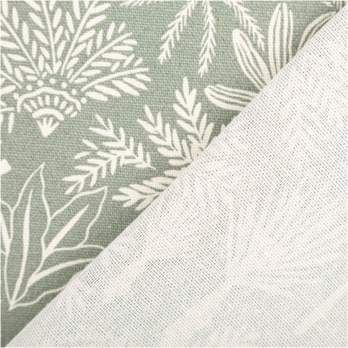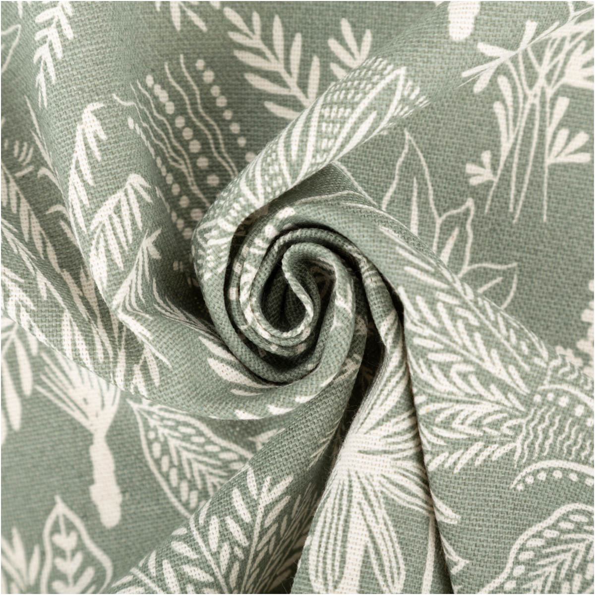 Der Dekostoff Haute-Savoie Halb-Panama Agave in dezentem Salbei-Grün mit französischem Dessin bringt natürlichen Charme in dein Zuhause. Der Baumwollstoff zeichnet sich durch seine robuste Halb-Panamabindung und seinen hohen Baumwollanteil von 88% aus, der ihm eine griffige Haptik und den natürlichen Look verleiht. Dank der 12% Polyesterbeimischung ist der Stoff besonders pflegeleicht und langlebig. Das natürliche Dessin mit exotischen Palmen, Blättern und Pflanzen verleiht dem Stoff eine harmonische Ausstrahlung mit exotischem Touch.