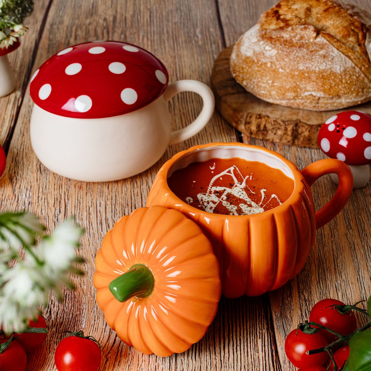 Sass & Belle Kürbis-Suppenschale mit Deckel – dekorative Schüssel für Herbst, Halloween & Gemütlichkeit