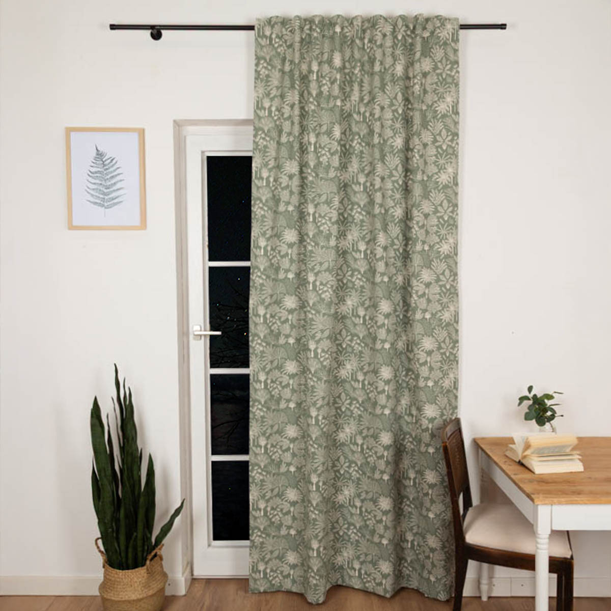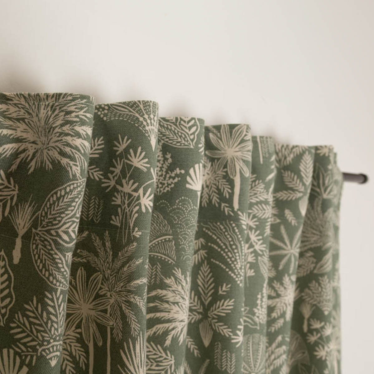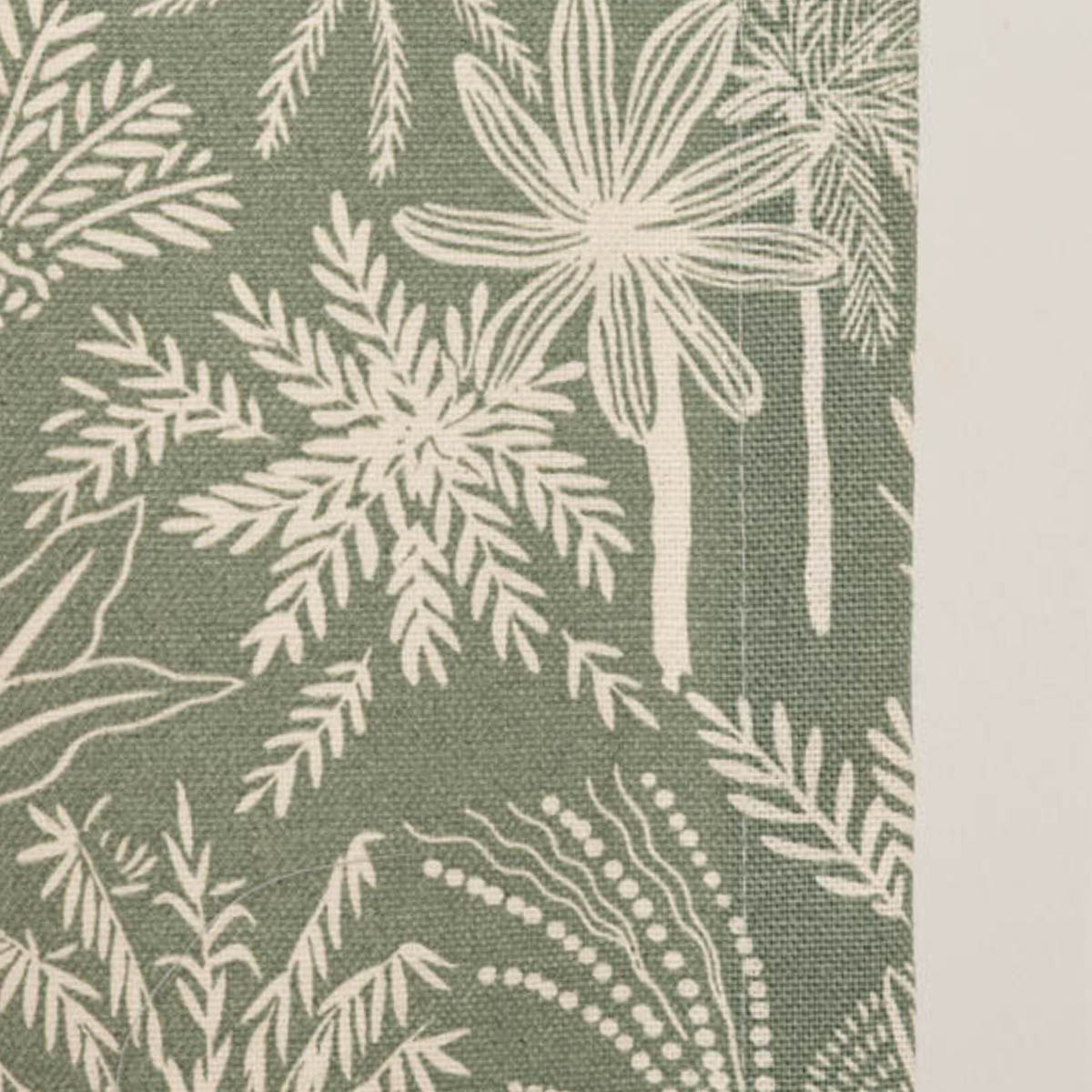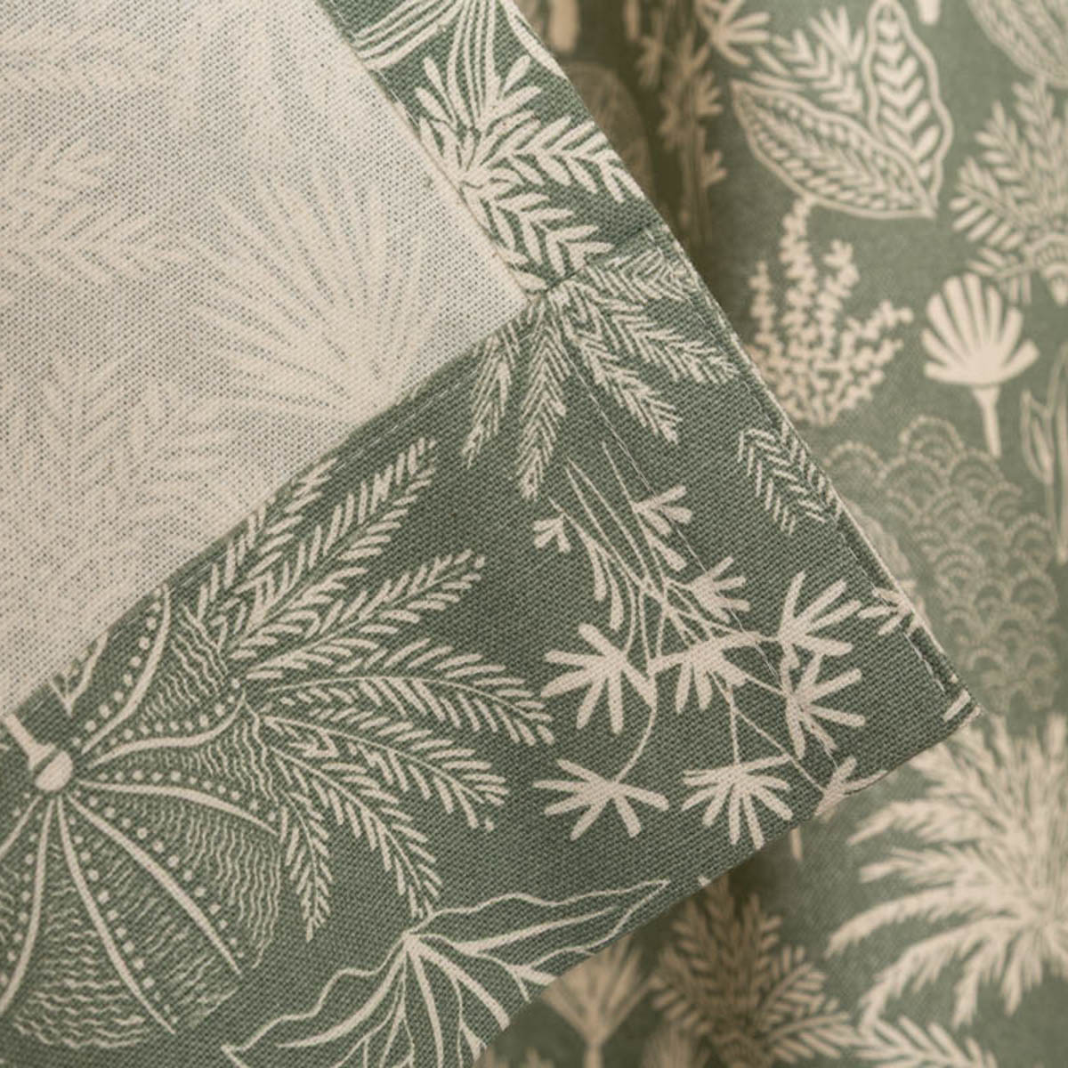 Exklusiver-Print: Das natürliche Dessin mit exotischen Blättern, Palmen und Pflanzen in Salbei-Grün ist ein einzigartiger Hingucker für deine Fenster.