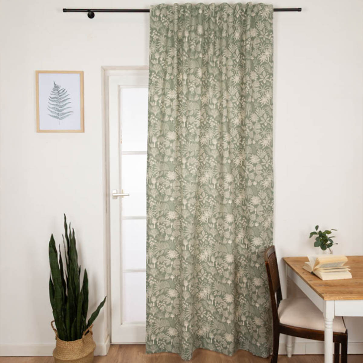 Der blickdichte Vorhang mit Palmen und Blättern in Salbei-Grün aus unserer SCHÖNER LEBEN. Kollektion ist ein einzigartiger Hingucker für deine Fenster. Der Vorhang Agave in dezentem Salbei-Grün mit französischem Dessin bringt natürlichen Charme in dein Zuhause. Der Vorhang zeichnet sich durch seine robuste Halb-Panamabindung und seinen hohen Baumwollanteil von 88% aus, der ihm eine griffige Haptik und den natürlichen Look verleiht. Dank der 12% Polyesterbeimischung ist der Stoff besonders pflegeleicht und langlebig. Das natürliche Dessin mit exotischen Palmen, Blättern und Pflanzen verleihen dem Vorhang eine harmonische Ausstrahlung mit dezent exotischem Touch.