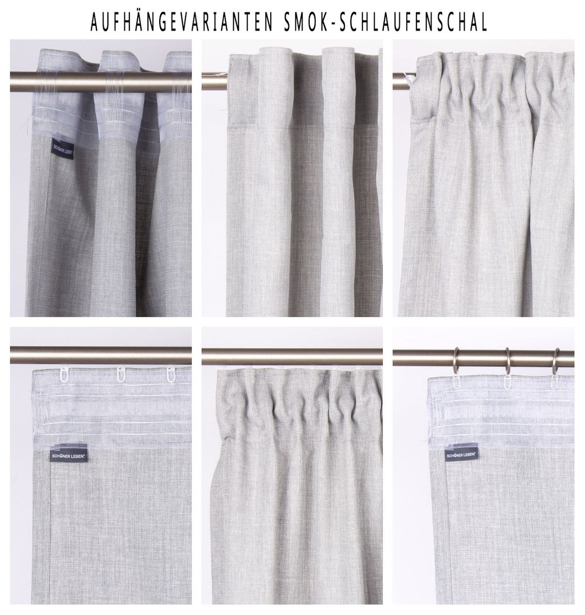 Smok-Schlaufenband: Der Vorhang ist mit einem hochwertigen Smok-Schlaufenband für eine flexible Aufhängung ausgestattet und sowohl für Schienen als auch Gardinenstangen geeignet. Die Aufhängung über die verdeckten Schlaufen ergibt einen schönen Wellenfall mit Ausbuchtung nur nach vorne. Die Smokbank-Variante ermöglicht es, den Vorhang auf eine feste Breite einzuziehen und den Vorhang über Häkchen oder Gleiter aufzuhängen.