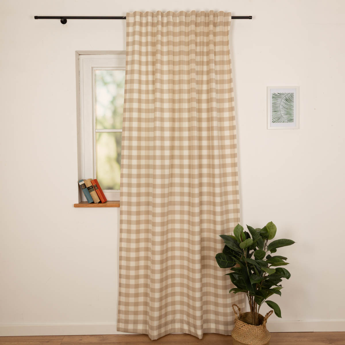 Dieser karierte Vorhang verleiht deinem Zuhause eine natürliche, warme Atmosphäre. Er fällt weich, hat eine angenehme Haptik und ist dank der hochwertigen Kunstfaser-Mischung besonders pflegeleicht. Passend dazu findest du in unserem Sortiment auch die Stoff-Meterware Karos Beige-Weiß mit einer Breite von 140 cm.