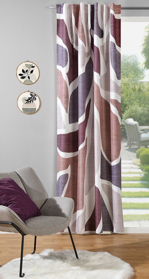 Das abstrakte Muster in Lila, Grau und Weiß wirkt modern und gleichzeitig ausgewogen. Die Farbgebung bringt eine sanfte Eleganz in den Raum und lässt sich vielseitig kombinieren. Besonders gut passt der Vorhang zu modernen, skandinavischen oder dezenten Einrichtungskonzepten.