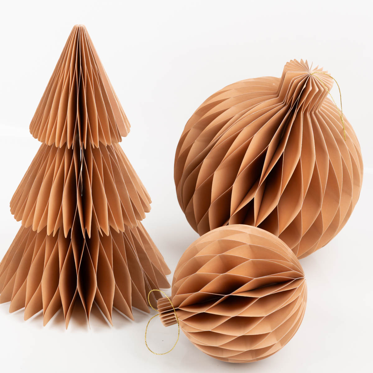 Nachhaltige Honeycomb Weihnachtskugel aus Papier – beige & elegant