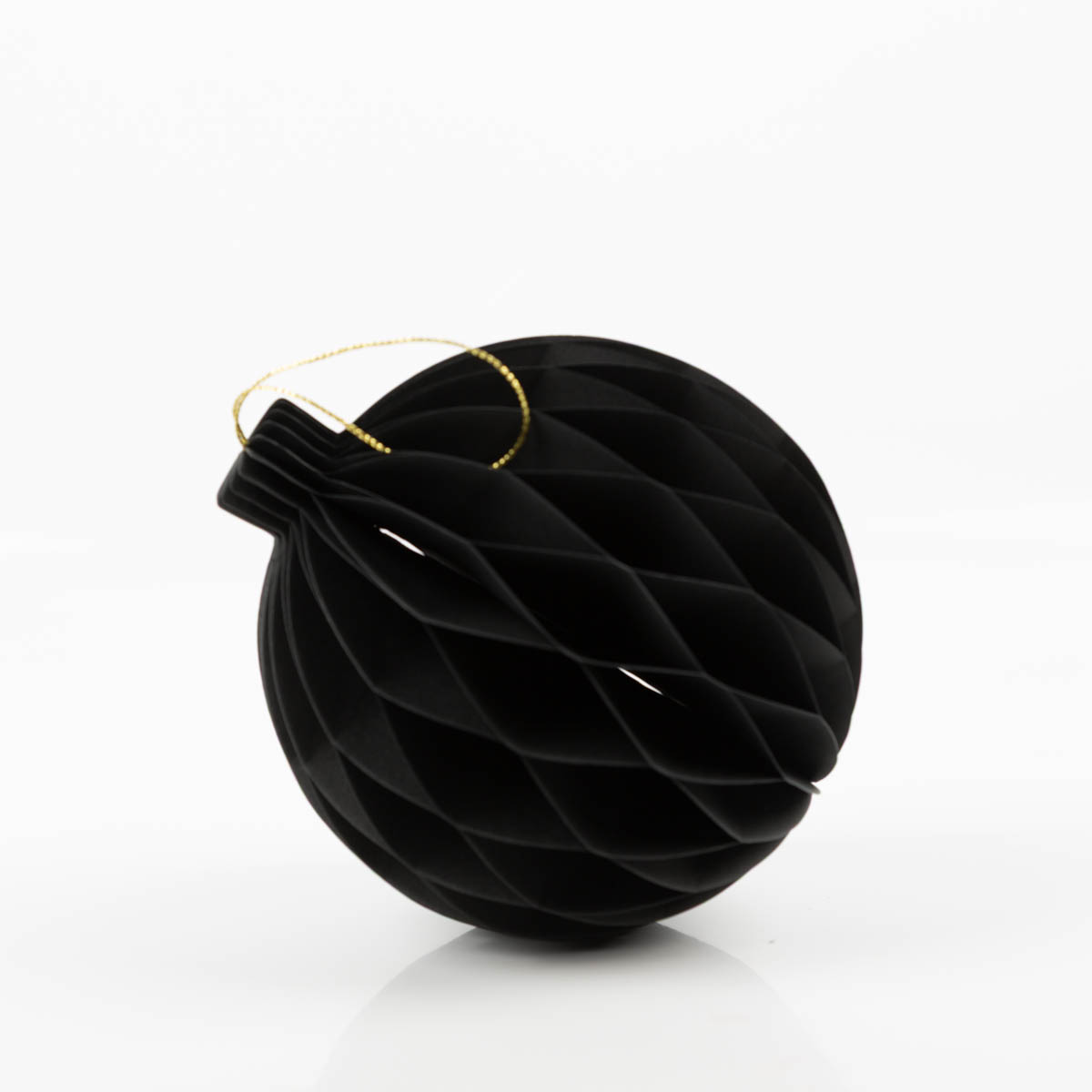 Nachhaltige Honeycomb Weihnachtskugel aus Papier – schwarz & elegant