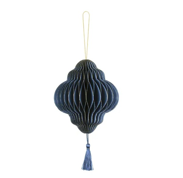 Weihnachtshänger Honeycomb Laterne mit Quaste blau mit Goldrand 13,2x15cm